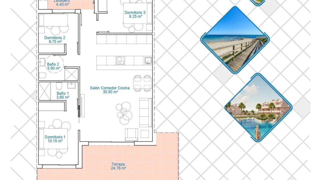 Odkryj nowy kompleks mieszkaniowy w Pilar de la Horadada, uprzywilejowanej lokalizacji na Costa Blanca. Zaledwie 2 km od plaży, projekt ten oferuje szeroki wybór nieruchomości z 3 sypialniami i 2 łazienkami, z prywatnym parkingiem wliczonym w cenę.