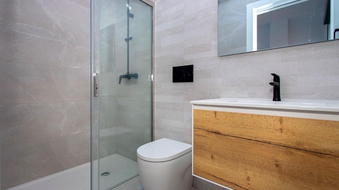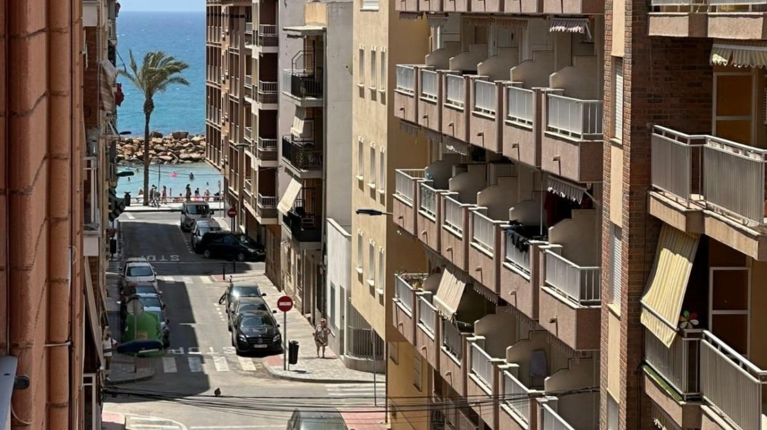 Brand-new corner apartment in an elegant building with a community swimming pool on the solarium with sea views, in the best area of Torrevieja, just a few minutes’walk from Playa del Cura and the seafront Promenade! It consists of a spacious living room with access to the terrace with side sea view, a furnished open kitchen, two bedrooms and two bathrooms with Italian showers. The main bedroom has an en-suite bathroom and access to a small terrace. NO furnished. NO white goods. Ducted air conditioning. Lots of natural light. Built-in wardrobes. Elevators. Video intercom. High quality materials. A real privilege with its swimming pool and sun terrace with panoramic sea views for rest and relaxation. Perfect location, near all amenities, restaurants, cafes, supermarkets, shops, the seafront Promenade and the Natural pools,… Ready to move in, enjoy the beach and the very pleasant Mediterranean climate all year round. And very close by, you can park your vehicle in the Virgen del Carmen underground parking!