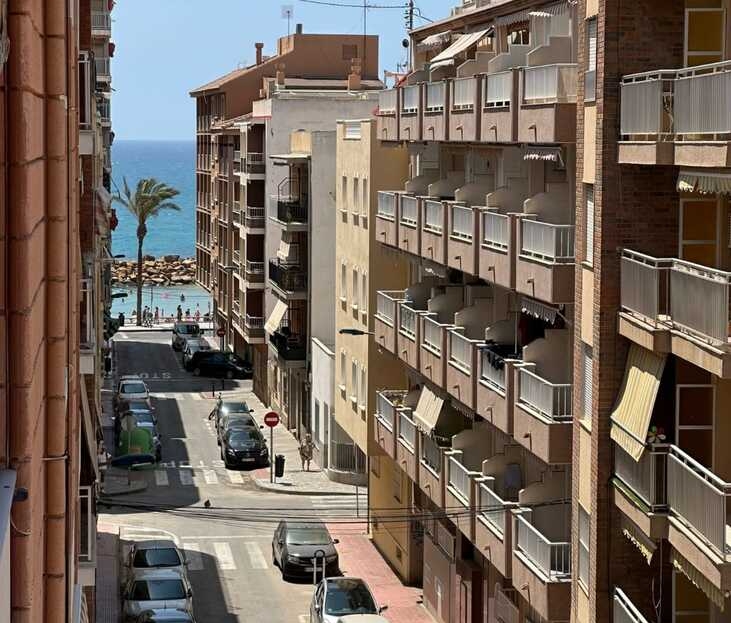Brand new apartment, just finished, a few minutes from the Natural Pools and Playa del Cura, Paseo Marítimo de TorreviejaApartment with 88 m², 2 bedrooms, 2 full bathrooms, French-style kitchen open to the living room, terrace and balcony.Air conditioning, individual heating, building with elevator.SOUTH and WEST FACING.Sold UNFURNISHED, WITHOUT appliances.Communal area with swimming pool, shower and solarium with open views to the sea.Everything you could wish for to enjoy the benefits of a popular tourist city.Good layout, sunny, all exterior windows facing the street, balcony with side sea view, terrace to supervise the carnivals and panoramic view of the city.Underground public parking one block away.Energy certificate• Consumption: 25 kWh/m² year• Emissions: 4 kg CO2/m² yearYEAR OF CONSTRUCTION 2024COMMUNITY 600€ YEAR
