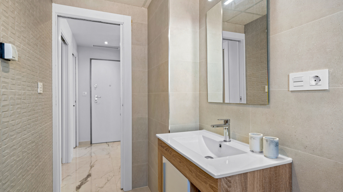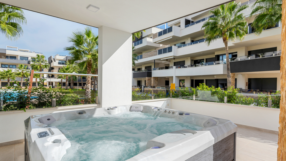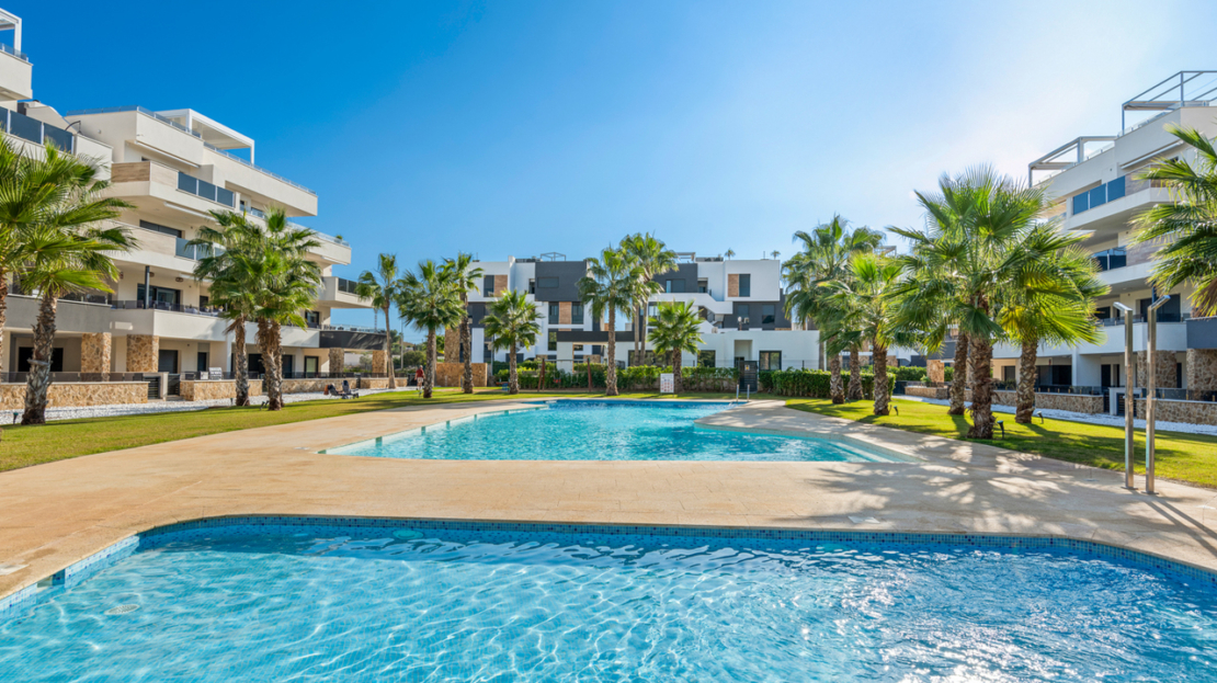 This modern luxury second floor corner apartment with 2 bedrooms and large private terrace is situated in the very sought after area of Villamartin, Alicante (Orihuela Costa)The property will be sold fully furnished and consists of a spacious lounge/dining room area, a modern open plan fully equipped kitchen, two bedrooms with fitted wardrobes, two bathrooms (one is en-suite), patio doors from the lounge also lead out onto a private terrace to enjoy the Spanish sun all day. Parking space and storage room in the underground garage is included in the price as well.All residents of this development have use of the indoor gym and the Spa & Wellness area, a very beautiful landscaped communal garden with swimming pool and jacuzzi, children’s playground.Set in a great location with stunning views, you are only a few minutes walk away from the famous Villamartin Plaza with local restaurants, bars and shops to cater for all tastes and needs. The fantastic sandy beach of La Zenia is only a 10 minute drive away.