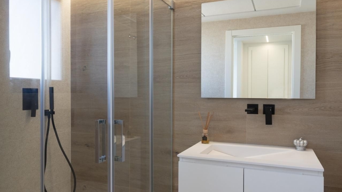 Apartamenty i penthousy z dwiema i trzema sypialniami, wszystkie z widokiem na morze. Wspaniałe części wspólne z dużym ogrodem i dwoma basenami, w tym jeden dla dzieci.