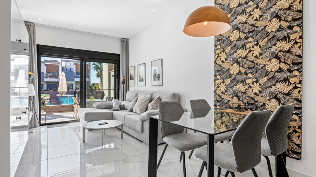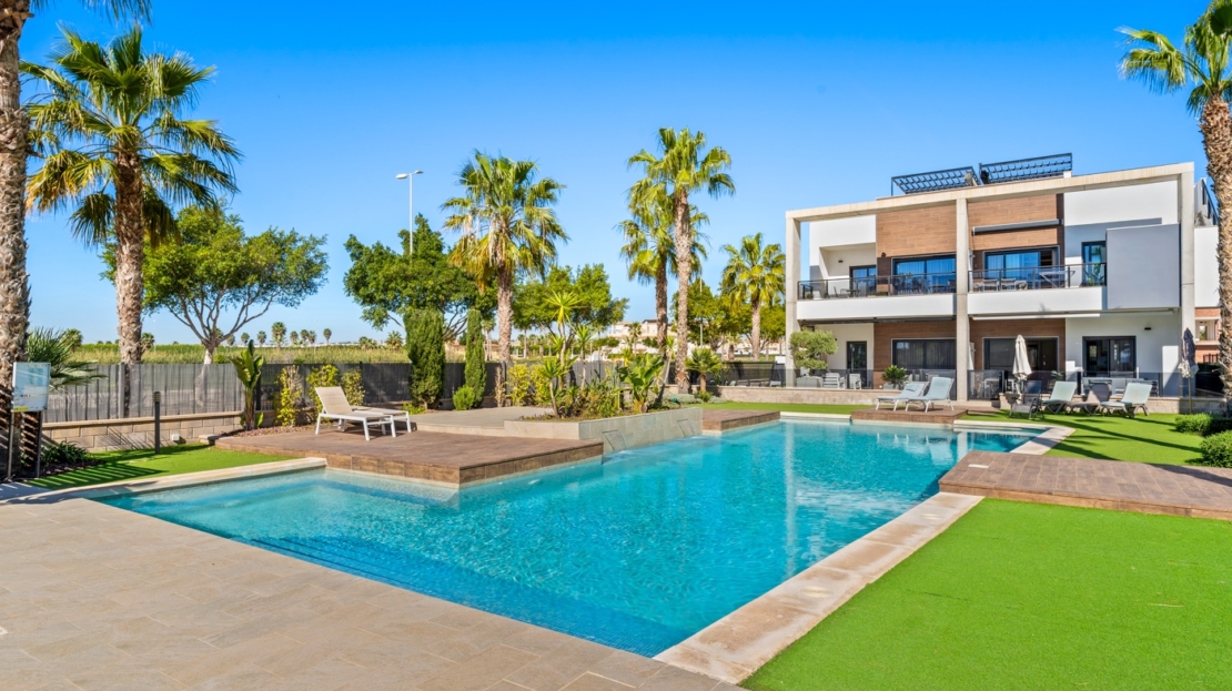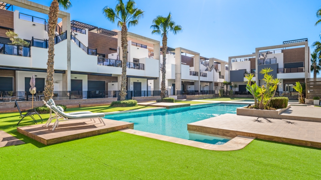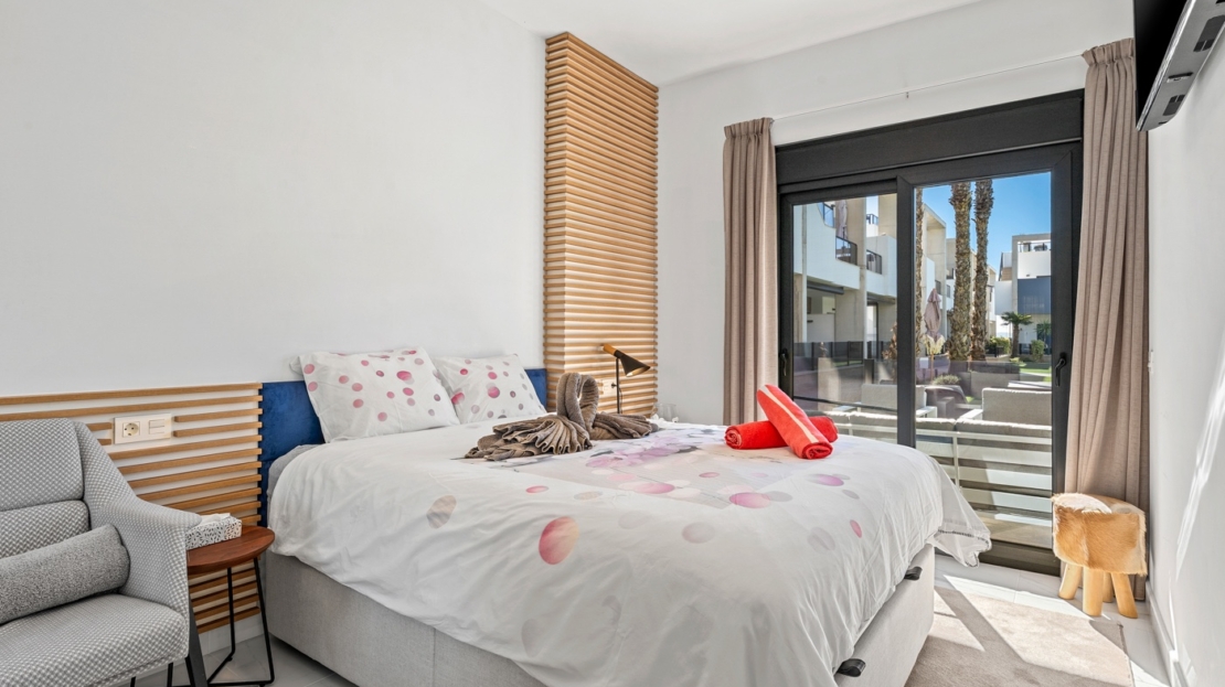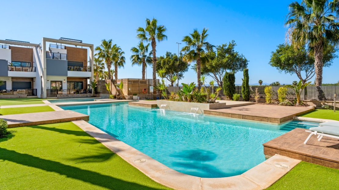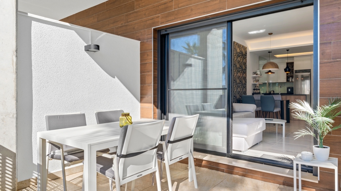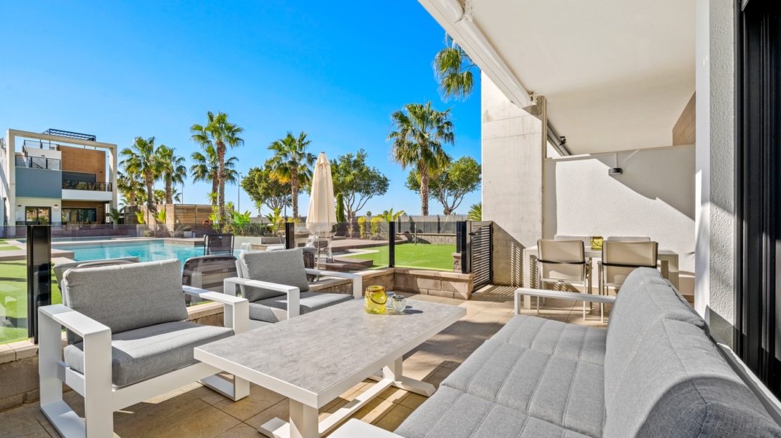 Apartamento en planta baja en El Raso, Guardamar del SeguraEste precioso apartamento en planta baja con orientación sur se encuentra en un moderno complejo residencial en El Raso , Guardamar del Segura. El apartamento cuenta con dos dormitorios , dos baños y un amplio salón-comedor con cocina integrada, que da a una hermosa terraza orientada al sur con vistas a la piscina. Todo el apartamento está equipado con aire acondicionado central. También cuenta con mosquiteras y un gran toldo que da sombra a toda la terraza, lo que le permite disfrutar plenamente tanto del interior como del exterior. Gracias a su carácter de pequeña escala (sólo 31 viviendas), aquí podrá disfrutar de las instalaciones con tranquilidad y tranquilidad.El complejo residencial está diseñado pensando en la comodidad y la relajación , ofreciendo servicios como piscina , estacionamiento subterráneo y áreas verdes . La zona es tranquila y está rodeada de naturaleza, a poca distancia de un centro comercial , bares y restaurantes .Vivir en Guardamar del SeguraEl Raso forma parte de Guardamar del Segura , un encantador pueblo costero conocido por su belleza natural y amplia oferta de servicios . Ubicado en la Costa Blanca Sur , Guardamar ofrece más de once kilómetros de playas naturales , rodeadas de un extenso pinar .El pueblo cuenta con un puerto deportivo con actividades durante todo el año, un polideportivo con pistas de pádel y tenis, campos de fútbol y una piscina climatizada . También encontrará una moderna biblioteca con wifi gratuito y ordenadores, ideal para quienes buscan combinar relax y comodidad.Excelente accesibilidadGracias a su ubicación estratégica, a tan solo 20 kilómetros del Aeropuerto de Alicante-Elche (El Altet), Guardamar es fácilmente accesible. El aeropuerto ofrece conexiones diarias con numerosas ciudades europeas, lo que la convierte en una ubicación especialmente atractiva para compradores y turistas internacionales .
