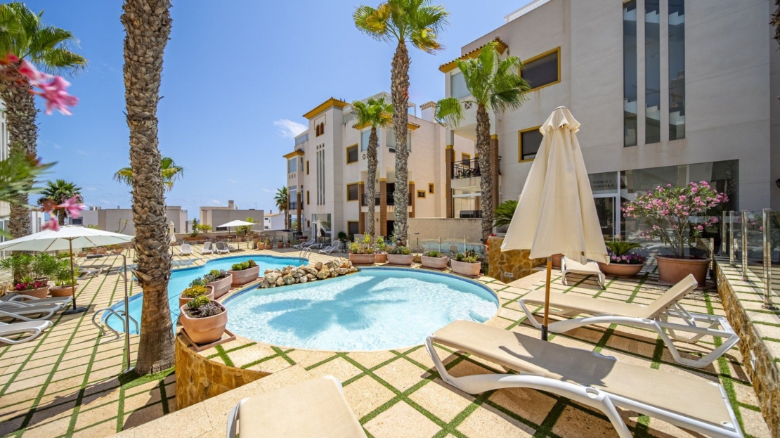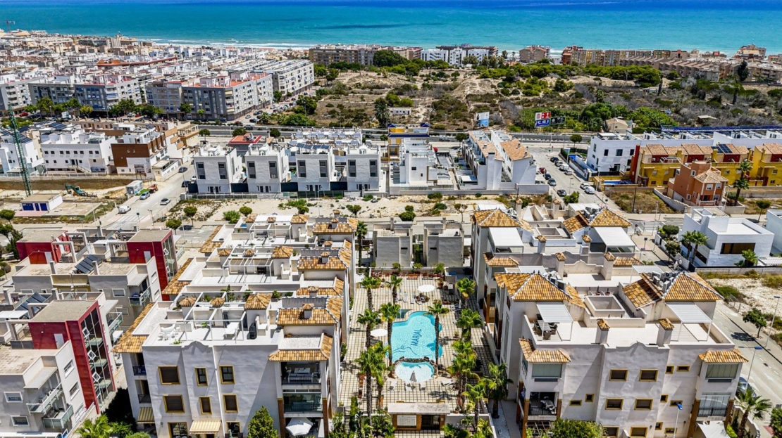 Kompleks oferuje basen zewnętrzny z kaskadą i strefą plażową, podgrzewany basen wewnętrzny, siłownię, saunę oraz szatnie. Nieruchomość wybudowana w 2013 roku, położona zaledwie 850 m od plaży w Guardamar oraz w pobliżu barów, sklepów i restauracji. Lotnisko w Alicante oddalone o 30 minut jazdy samochodem.