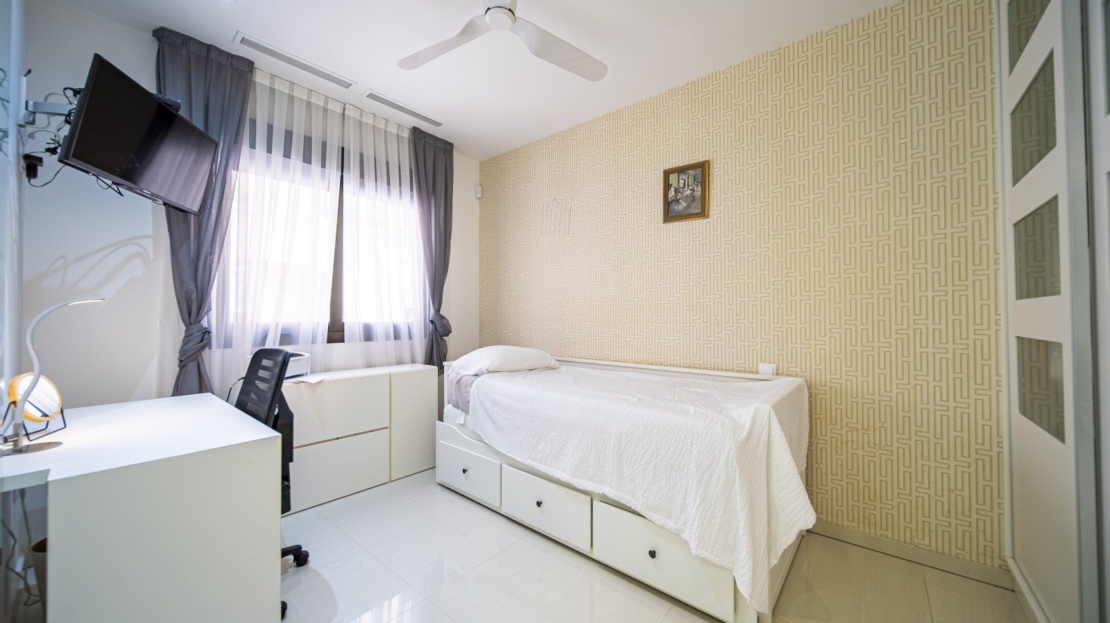 Położony w zadbanym kompleksie mieszkaniowym w stylu śródziemnomorskim, apartament oferuje 70 m² powierzchni zabudowanej, 2 sypialnie i 2 łazienki, w tym jedną en suite. Jasny salon z jadalnią i otwartą kuchnią prowadzi na przestronny taras o powierzchni 40 m² z widokiem na morze. W cenie miejsce parkingowe w garażu podziemnym oraz komórka lokatorska.