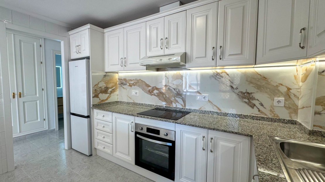 Apartamento totalmente reformado en venta en la prestigiosa zona de Lomas de Campoamor, una ubicación privilegiada en la Costa Blanca Sur, junto a campos de golf y rodeado de zonas verdes.Esta elegante vivienda en planta baja elevada con orientación sur ofrece una excelente luminosidad durante todo el día y vistas abiertas al entorno natural. Con 83 m² construidos, dispone de 2 dormitorios, 2 baños completos con ducha tipo walk-in y un diseño interior moderno con materiales de alta calidad.El apartamento ha sido completamente renovado e incluye mobiliario de diseño, suelos porcelánicos de gran formato, elementos en piedra natural, sistema de aire acondicionado inverter, calefacción y sistema de seguridad.La urbanización cuenta con piscina comunitaria, jardines cuidados y ascensor, todo en un entorno tranquilo y exclusivo a poca distancia de campos de golf.Una propiedad ideal como residencia permanente, casa de vacaciones o inversión inmobiliaria en la Costa Blanca.