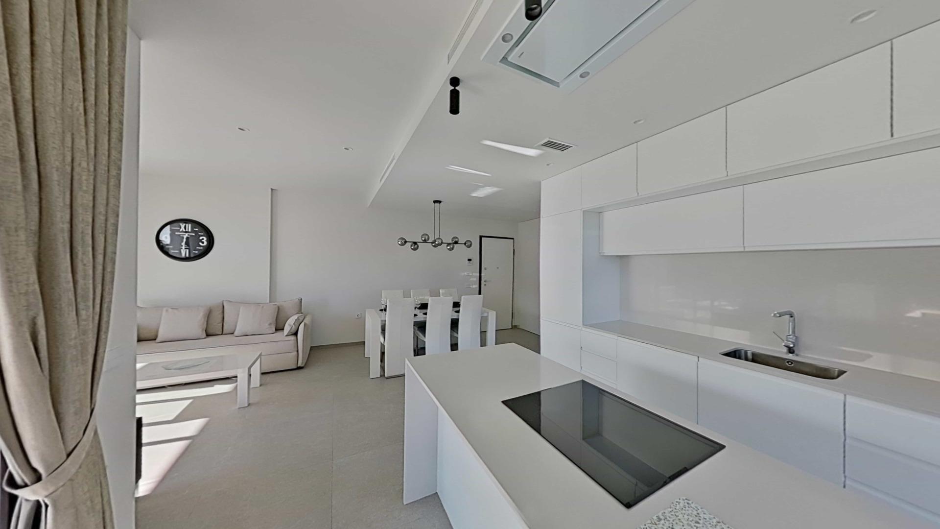 Apartamento de lujo de obra reciente (2023) ubicado en el exclusivo Residencial Los Mandarinos, dentro de Las Colinas Golf & Country Club, Orihuela Costa.~~La vivienda cuenta con 113 m2 construidos y una magnífica terraza de 20 m2, desde donde se disfrutan vistas abiertas y espectaculares al entorno natural. Dispone de 3 amplios dormitorios y 2 baños, uno de ellos en suite con vestidor. La cocina americana totalmente equipada se integra con un luminoso salón, todo exterior, diseñado para aprovechar al máximo la luz y las vistas. Se vende amueblado, con aire acondicionado por conductos, plaza de garaje y trastero. El residencial ofrece una elegante piscina comunitaria infinity.~~Las Colinas Golf es una de las zonas más exclusivas de la Costa Blanca, rodeada de naturaleza protegida, tranquilidad y privacidad, con un prestigioso campo de golf, seguridad 24h y cercanía a playas, servicios y restaurantes de alto nivel. Ideal para quienes buscan lujo, confort y calidad de vida.