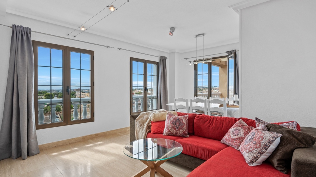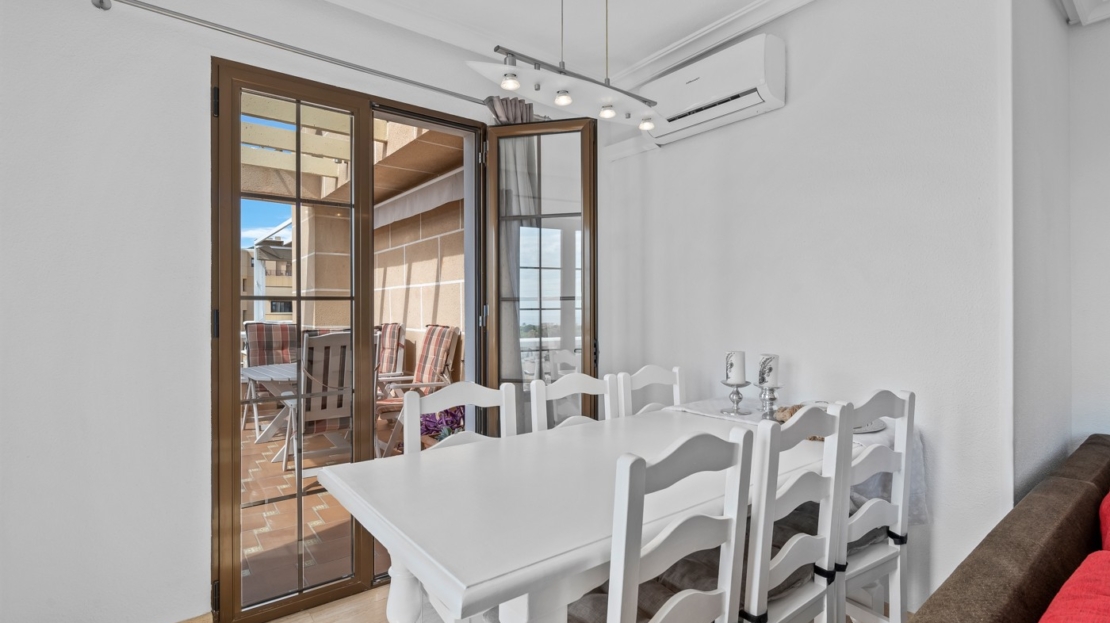 Duplex Penthouse with Sea Views in Punta Prima, AlicanteDiscover this stunning south-facing duplex penthouse apartment ideally located on the beach side of Punta Prima, just 700 meters from the sea.The property is set within a well-maintained community with lift access and a large swimming pool, perfect for enjoying the Mediterranean lifestyle.Inside, the apartment is thoughtfully designed across two levels:Lower level: Comfortable bedrooms and a full bathroom, ensuring privacy and restful nights.Upper level: A bright open-plan living space with a modern kitchen and another bathroom. From here, step out onto a sunny terrace with breathtaking sea views, ideal for outdoor dining and relaxation.This penthouse comes fully furnished and includes a private parking space for convenience.Location Highlights:Walking distance to supermarkets, shops, cafés, and restaurants700m to the beachExcellent transport links to Alicante city and airportWhether you are looking for a holiday retreat, a rental investment, or a year-round home, this property offers the perfect combination of comfort, location, and lifestyle.