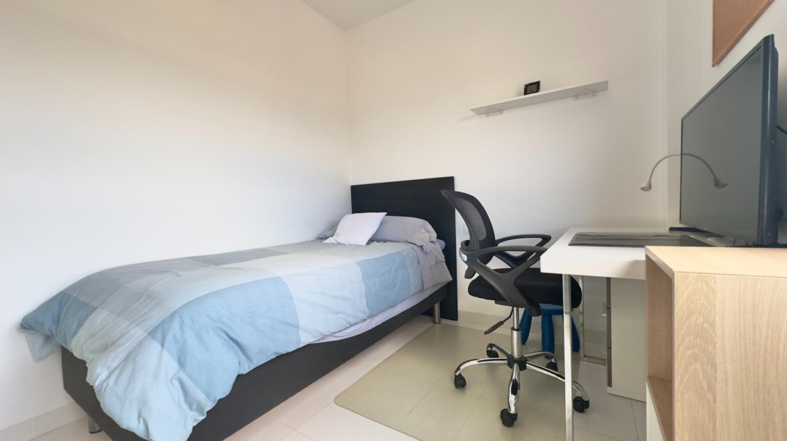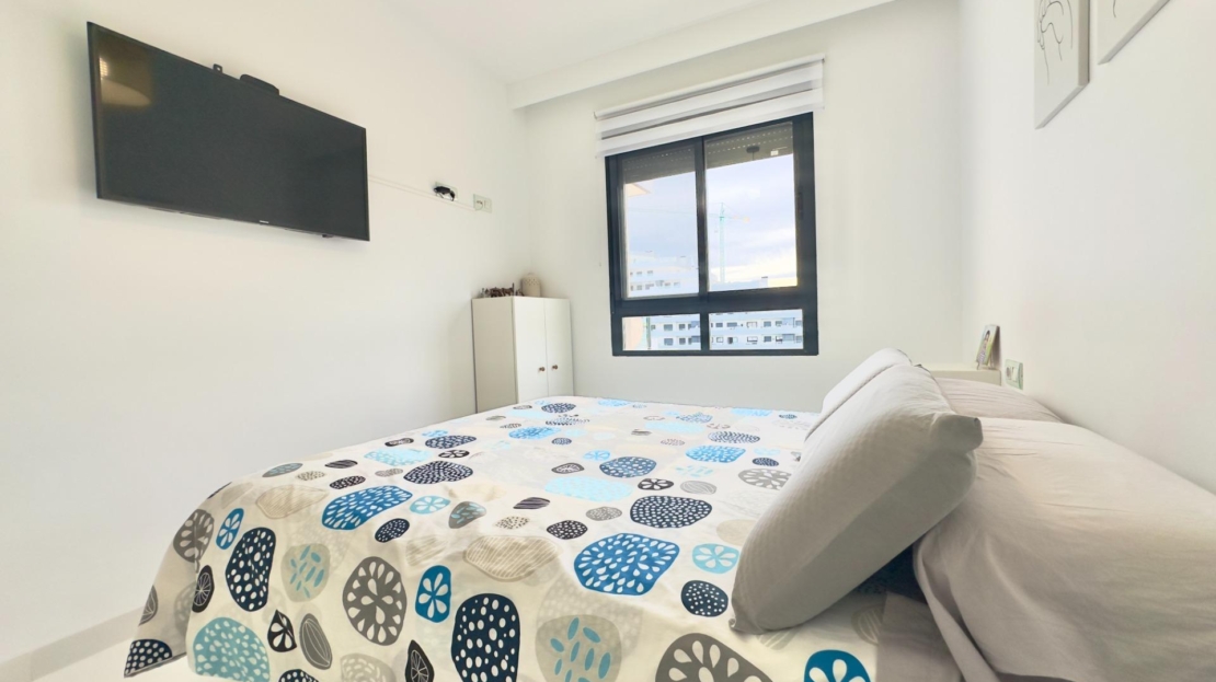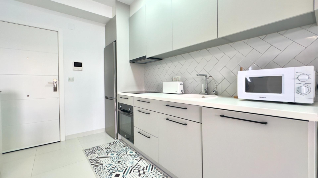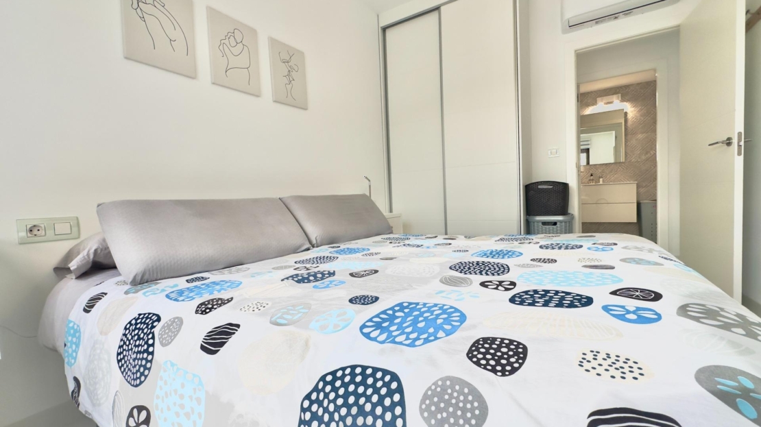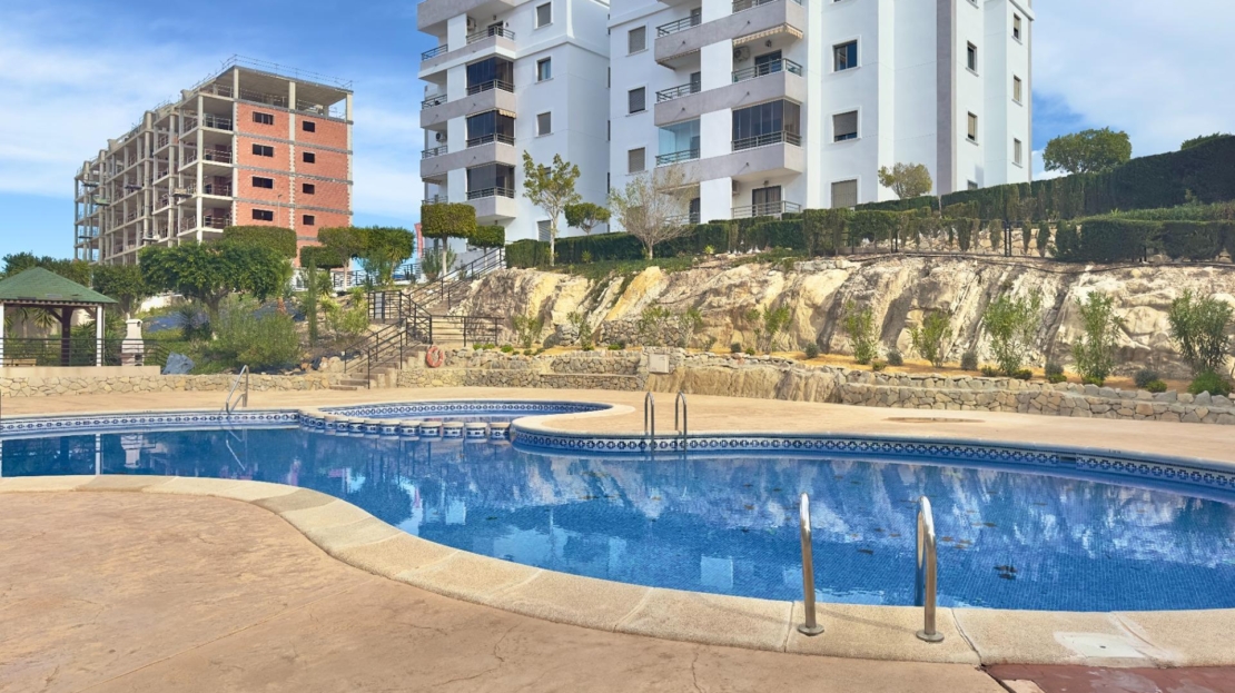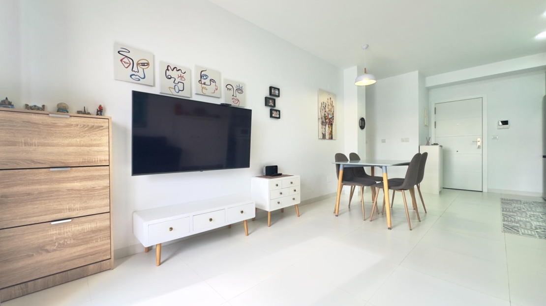 Luminoso apartamento en tercera planta y en esquina, situado en un edificio de reciente construcción en la zona nueva y en plena expansión de San Miguel de Salinas. La vivienda cuenta con 2 dormitorios y 2 baños, ofreciendo una distribución cómoda y funcional.~~La cocina está integrada en el salón, creando un espacio moderno y abierto, ideal para el día a día. Desde el salón se accede a un balcón con orientación suroeste, que disfruta de sol durante la mayor parte del día y ofrece vistas despejadas a la rambla, aportando una agradable sensación de amplitud y tranquilidad.~~El apartamento forma parte de un residencial cerrado con piscina comunitaria, perfecto para disfrutar del clima mediterráneo. Además, incluye plaza de parking y trastero, aportando un extra de comodidad y espacio de almacenaje.~~Una vivienda ideal tanto como residencia habitual, segunda vivienda o inversión, en una zona bien comunicada y con todos los servicios cercanos.~~San Miguel de Salinas es un destino cada vez más demandado en la Costa Blanca, ideal para la inversión en alquiler turístico. Su ubicación estratégica, cerca de las playas de Orihuela Costa, campos de golf y servicios, junto a su clima soleado durante todo el año, garantiza una alta demanda tanto vacacional como de larga estancia.~