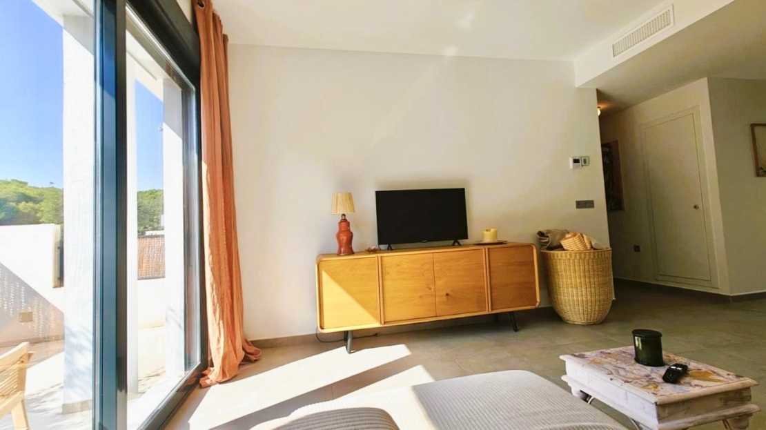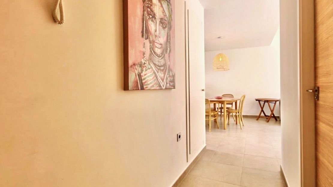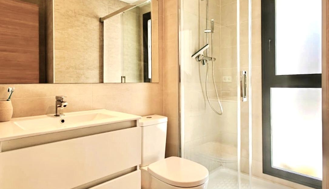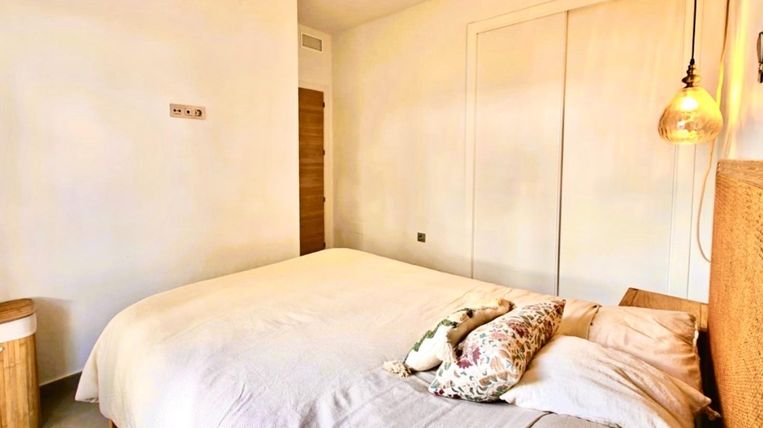 Apartamento en planta baja a 900m de la playa A solo 900 metros del mar, en la apreciada Santiago de la Ribera, se encuentra este moderno apartamento en planta baja construido en 2023, que combina comodidad, luz y una excelente ubicación. Dispone de tres dormitorios y dos baños con una distribución práctica y espaciosa. Las terrazas delantera y trasera permiten disfrutar del sol o la sombra en cualquier momento del día, mientras que la orientación sur aporta mucha luz natural. El aire acondicionado es regulable de forma independiente en cada estancia y la vivienda se vende completamente amueblada, lista para entrar a vivir. La urbanización cuenta con una gran piscina comunitaria y aparcamiento dentro de la parcela. Con gastos de comunidad de solo 56 € al mes, también resulta atractiva a nivel económico. Existe la posibilidad de alquiler de larga duración por aproximadamente 1.500 € al mes y la licencia para alquiler vacacional puede solicitarse fácilmente. Tiendas, restaurantes y el mercado semanal están a poca distancia a pie, al igual que las playas y el paseo marítimo de Santiago de la Ribera, junto al precioso Mar Menor. Una vivienda ideal para disfrutar o como inversión en la costa.