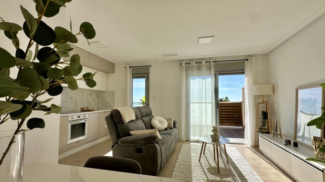 This beautifully renovated apartment is located on the 5th floor of a well-maintained building in Torrevieja, just a 5-minute walk from the sea.The property offers 90 m² of modern living space and features 3 spacious bedrooms, 2 stylish bathrooms, and a bright open-plan living and dining area. The apartment has been fully renovated in a contemporary style, using modern materials and finishes throughout.One of the highlights is the large south-facing terrace, perfect for enjoying the sun all day, relaxing, or entertaining guests.✔ 5th floor✔ South orientation✔ Fully renovated – modern design✔ Large sunny terrace✔ Walking distance to the beach✔ Optional underground garage parking (+13,000 €)An ideal property for permanent living, a holiday home, or a rental investment in one of Torrevieja’s most convenient locations.