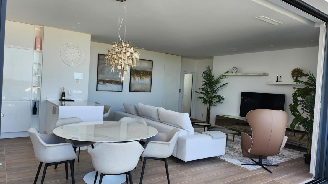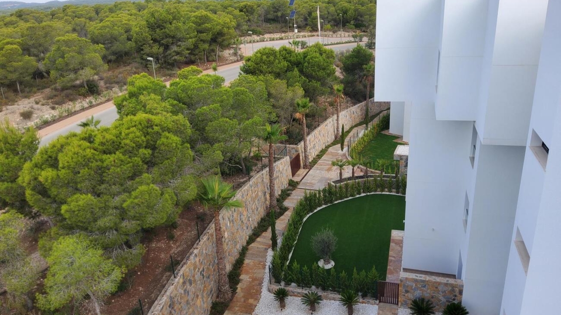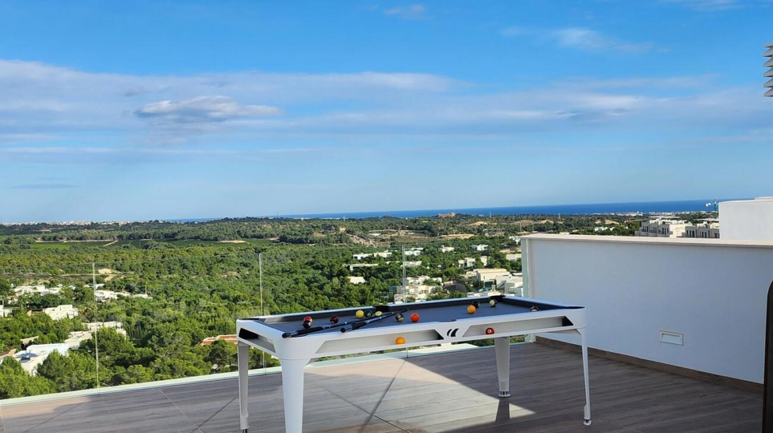 Dit gloednieuwe, luxueus ingerichte penthouse met spectaculair uitzicht is gelegen op het prestigieuze Las Colinas golfresort. De drie ingerichte slaapkamers, ruimtelijke en stijlvolle woonkamer, terras en solarium in combinatie met een prachtige mediterrane landschap en beschutte ligging maken dit droomappartement tot een uitstekende keuze als woon of buitenverblijf in Spanje. Door te kiezen voor lichte kleuren en een elegante inrichting ademen alle 3 slaapkamers (waaronder 1 met een eigen badkamer) serene rust en comfort uit. De woonkamer met open keuken, barhoek en ruim terras (23m2) biedt een magnifieke uitkijk over het golfresort. De modern compleet uitgeruste keuken met inbouwkasten beschikt over een vaatwasser met comfortlift-technologie, waterfiltersysteem, inductiekookplaat, wijnkoeler enz. In elke kamer zijn er elektrische binnen rolluiken geïnstalleerd voor meer sfeer en privacy. Een optimaal binnenklimaat is gegarandeerd d.m.v. een energie-efficiënte warmtepomp-luchtbehandelingssysteemcombo en kan voor elke kamer apart geregeld worden. De woning heeft ondergronds een private parkeerplaats waar desgewenst nog een laadpaal geïnstalleerd kan worden, een ruime berging en prachtig gemeenschappelijk zwembad. Het Spaanse vakantiegevoel kan ten allen tijde ervaren worden op het royale dakterras van liefst 100 m2! met een buitenkeuken, pergola, jacuzzi en 360 graden onverhinderd zicht over het natuurlijke landschap en de Middellandse zee. De buitenkeuken (3×3,6m2) beschikt over veel kastruimte, een granieten werkblad, inductieplaat, vaatwasser en koelkast. Het schuifdak van de aluminium pergola (5x3m2) is elektrisch bedienbaar en creert een ideale schaduwplek. Om uw verblijf helemaal te vervolledigen kunt u het ultieme gevoel van het genieten in uw eigen jacuzzi ervaren: 5 personen, 102 hydrojets, ledverlichting en speakers!Hoe heerlijk zou het wel niet zijn om de dag te beginnen met een verse kop koffie aan de bar of te eindigen met een heerlijk cocktail bij zonsondergang op uw eigen dakterras in een mediterrane omgeving!