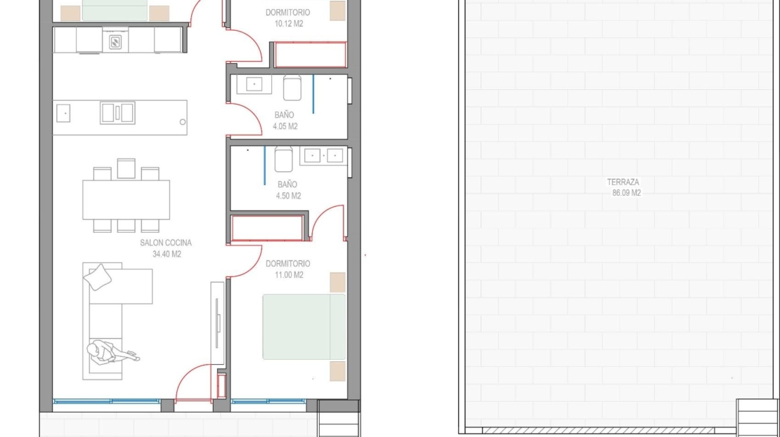 Inwestycja oferuje wybór apartamentów na parterze z tarasami od frontu i prywatnymi ogrodami lub apartamentów na najwyższym piętrze z przestronnymi tarasami i prywatnymi solarium. Każdy dom posiada 3 sypialnie i 2 łazienki, z których jedna jest łazienką przy sypialni, zaprojektowane z nowoczesnymi liniami i wysokiej jakości wykończeniami, aby zapewnić maksymalny komfort.