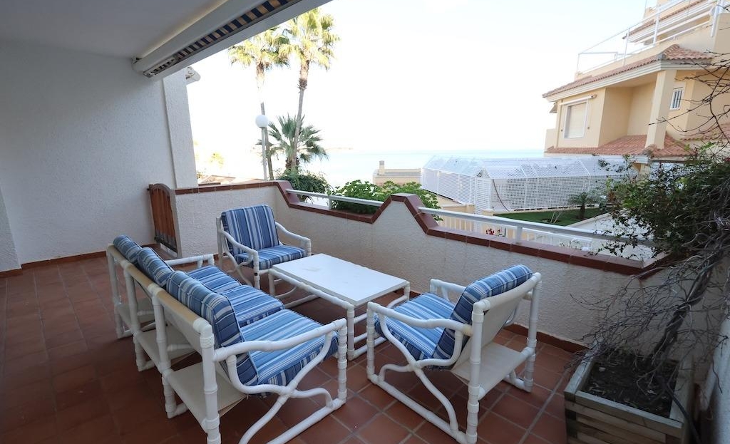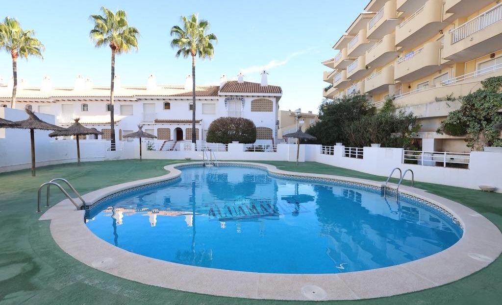 Aguamarina Ground floor bungalow with sea views. With a total built area of 81 m2 and 75 m2 of usable space, this property offers the perfect setting to enjoy the Mediterranean lifestyle. It features 2 spacious double bedrooms providing comfort and privacy, as well as 2 well-distributed full bathrooms to meet daily needs. There is a large living-dining room, a spacious independent kitchen with a closed utility room and rear patio, and a large front terrace. The residential complex includes a communal pool and is located just 100 meters from Aguamarina beach. The property is sold fully furnished.