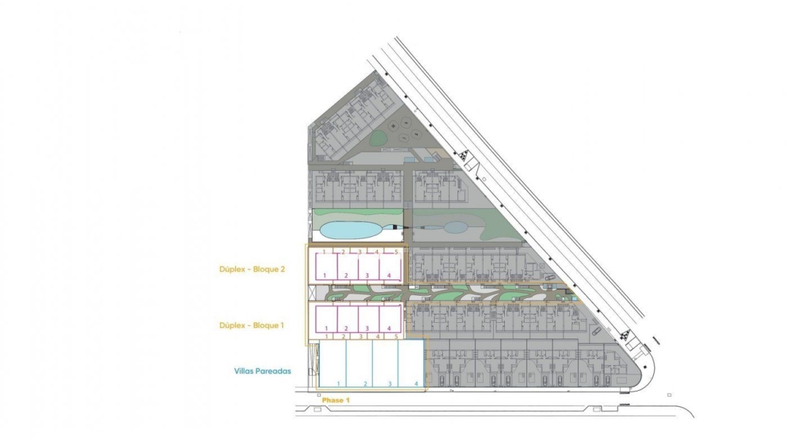 New Build residential complex of semi-detached villas and bungalows located in Los Balcones with the views to the pink lake.
