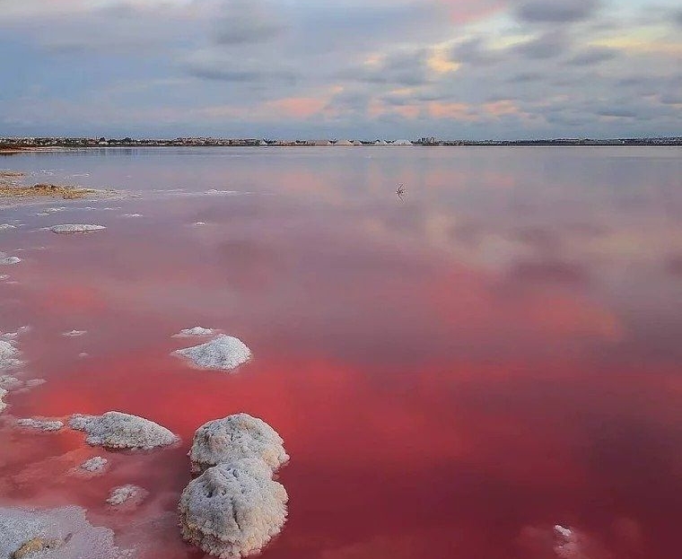Wewnątrz, Lagunas de La Mata-Torrevieja Natural Park ma szlaki i dwie słone laguny, jeden różowy i drugi zielony.