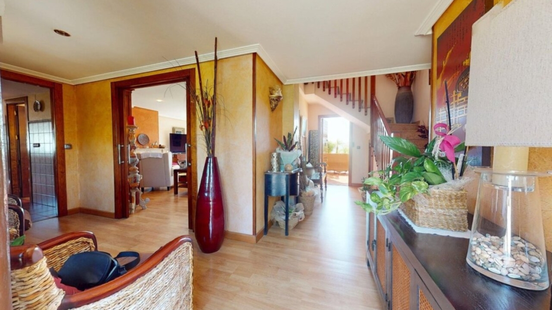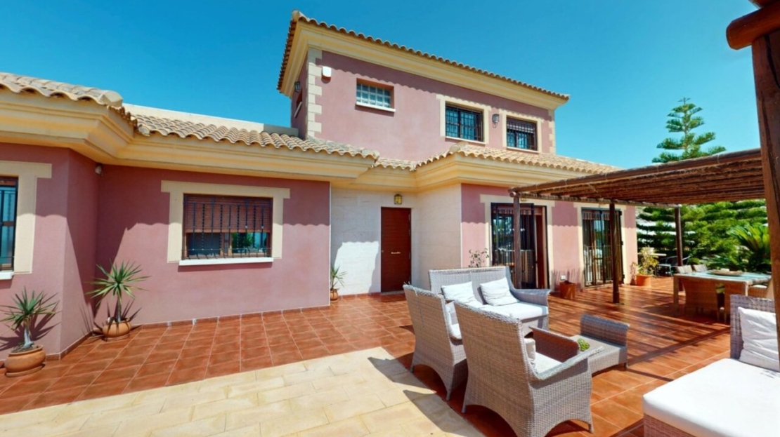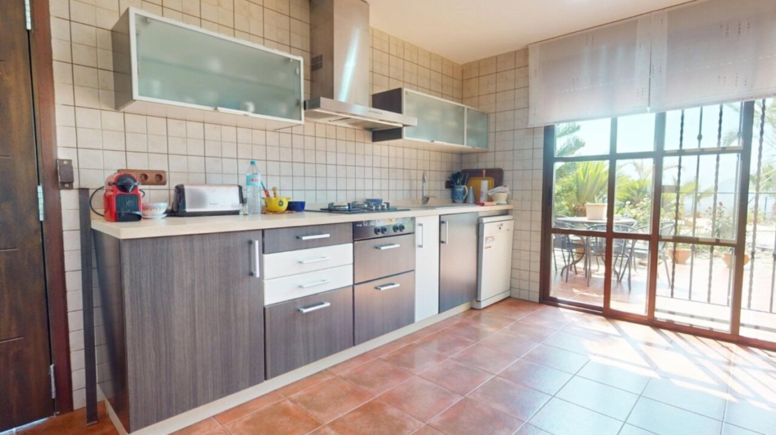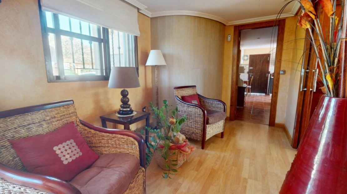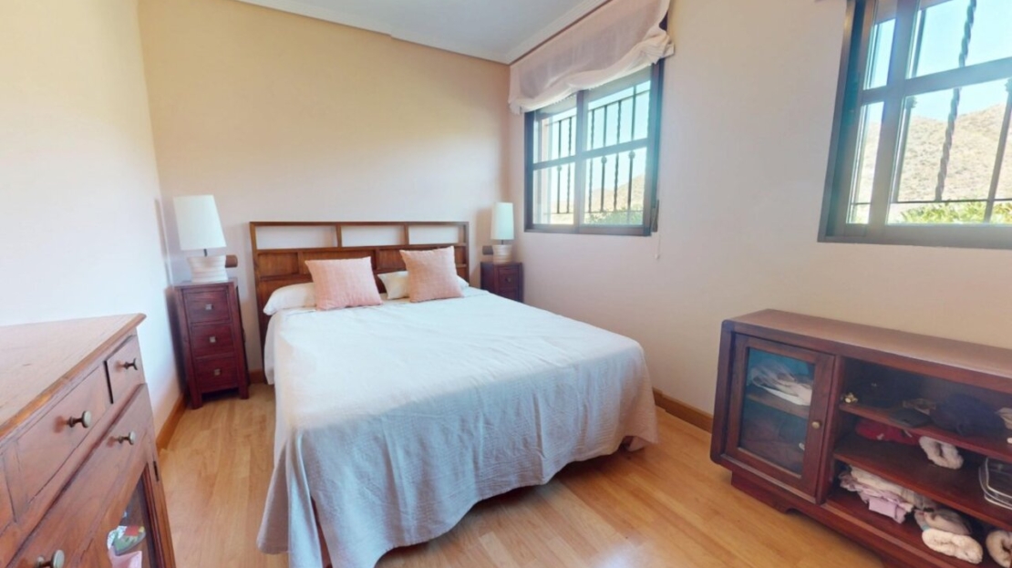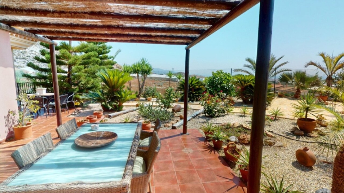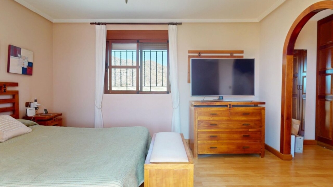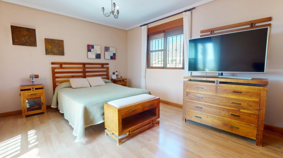 Spectacular Country House Finca with Stunning Panoramic Sea and Mountain Views – Set in 34,000m2 plot with 2,000m2 of Fenced Formal Gardens – The property has a Gate and Private Drive from the Main Road which takes you up through the Lovely Mediterranean Gardens to the property which is on a raised level with fantastic 360 degree views. 5 minutes to Village ,10 Minutes to the Beach, 15 minutes to full aminities of AguilasSpectacular villa with panoramic views of the sea and mountains, on a 34,000 m² plot – €880,000 EurosLocated in a privileged location, this impressive home offers unparalleled views of both the sea and the mountains. The property boasts a sprawling 34,000 m² plot, of which 2,000 m² are fenced around the home for greater privacy and convenience.The house is mainly distributed on the ground floor, where we find an elegant entrance hall, a spacious living-dining room with a fireplace, a bright separate kitchen, four bedrooms, and four full bathrooms. Upstairs, there is an additional bedroom with access to a large terrace with spectacular sea views.The basement has a garage with capacity for three vehicles. Outside, the private 8×4-meter pool invites you to relax and enjoy sunny days.Sold furnished (except for some personal furniture) and equipped with electricity, drinking water and irrigation water. A unique opportunity for those seeking tranquility, nature, and stunning views of Cabo Cope in an unparalleled setting.