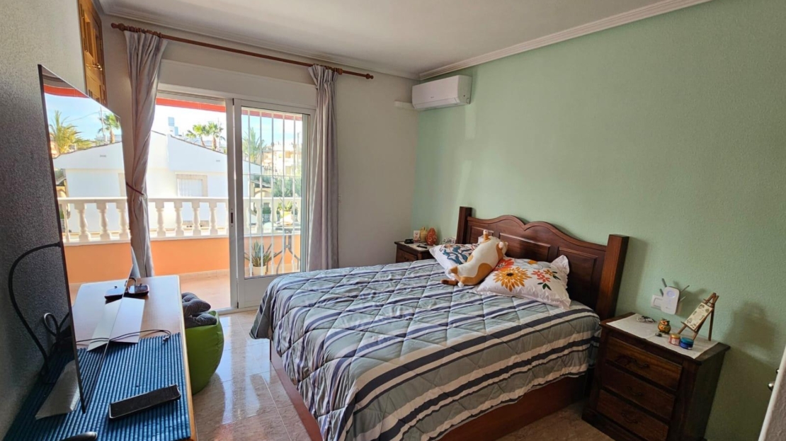 Odkryj tę uroczą, narożną willę w zabudowie bliźniaczej, skąpaną w naturalnym świetle przez cały rok dzięki dogodnej południowej ekspozycji i niezakłóconemu widokowi na dwie ciche uliczki. Ten starannie utrzymany dom jest świeżo pomalowany, zabezpieczony przed wilgocią, szczyci się nienaganną stolarką i pięknym, artystycznym muralem na fasadzie, który czyni go naprawdę wyjątkowym. Ciesz się przytulnym, słonecznym patio o powierzchni 20 m², idealnym do relaksu, wygodnego parkowania lub suszenia prania. Nieruchomość jest w pełni umeblowana i wyposażona w zupełnie nowy sprzęt AGD, gotowa do zamieszkania bez zmartwień. Nieruchomość wyposażona jest w panele fotowoltaiczne (9 paneli), oświetlenie LED, klimatyzację inwerterową oraz kompleksowy system bezpieczeństwa z wideodomofonem i kamerami. Dodatkowo, zamknięty garaż, schowek i wewnętrzne patio z rozsuwanym dachem zapewniają dodatkową wygodę i przestrzeń. Zaledwie 500 metrów od plaży i promenady, z przychodnią przy tej samej ulicy i wszystkimi udogodnieniami w zasięgu ręki, ten dom położony jest w cudownym Santiago de la Ribera, idealnym miejscu do życia lub wypoczynku przez cały rok. Cotygodniowy targ znajduje się 20 metrów od domu, a w pobliżu znajduje się wiele sportów wodnych, ścieżka rowerowa, bary plażowe, restauracje oraz doskonałe połączenia z Cartageną, Murcją i okolicami. Jasny, funkcjonalny i tętniący życiem dom… wyjątkowa okazja dla osób poszukujących komfortu, spokoju i morza.