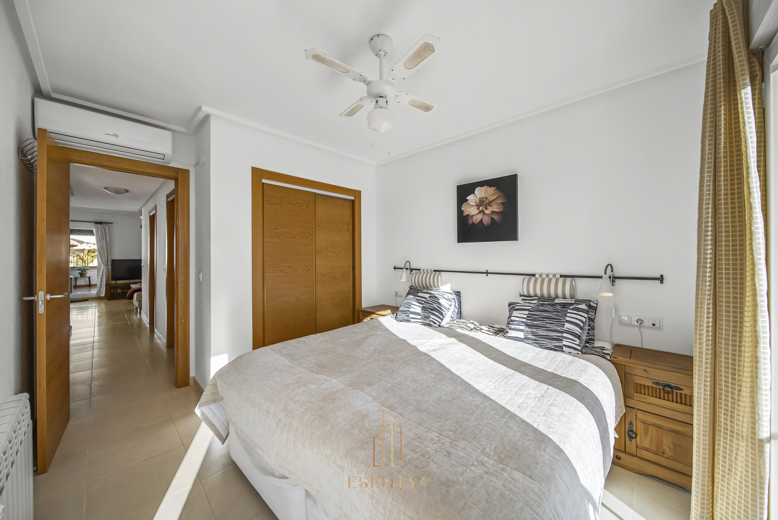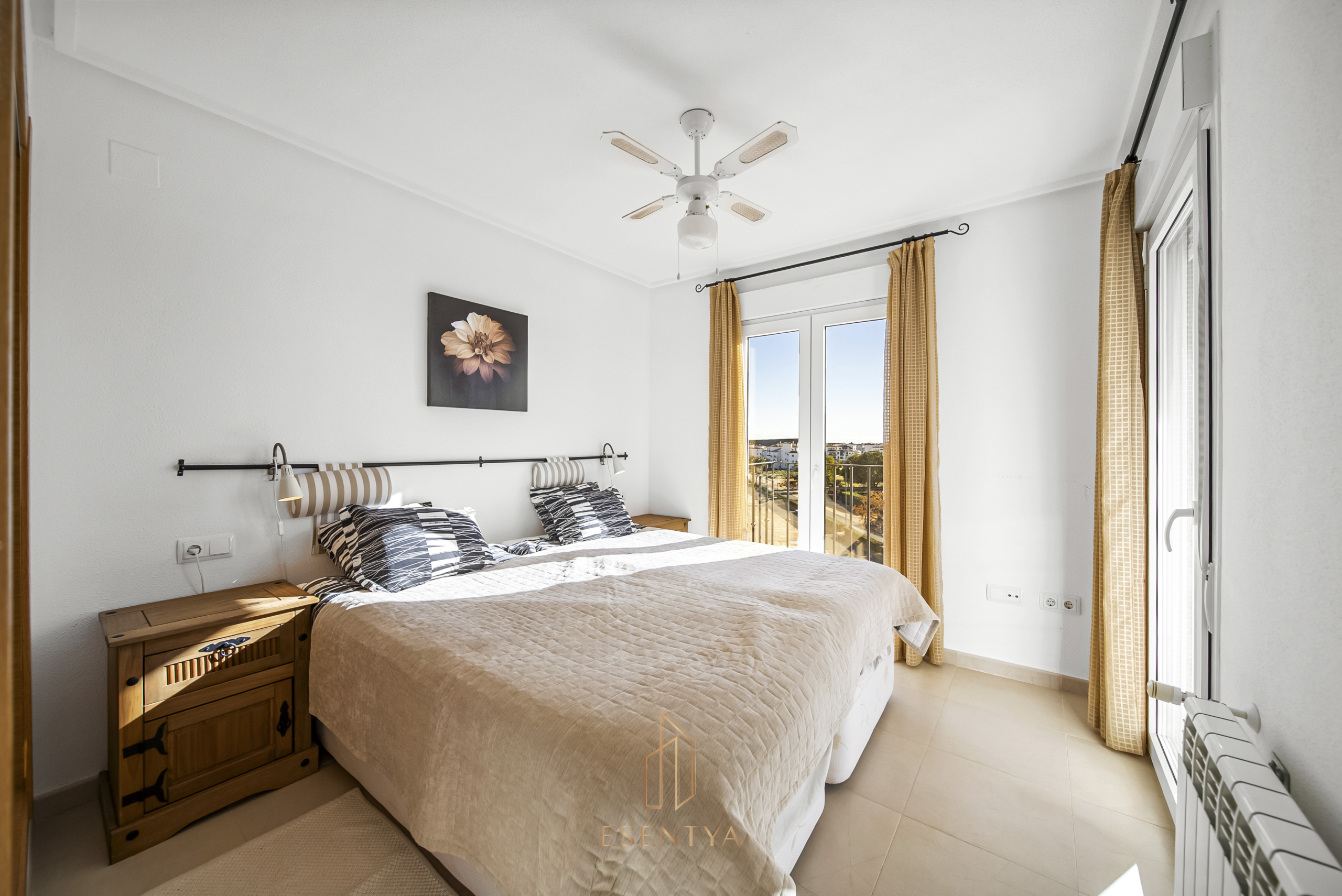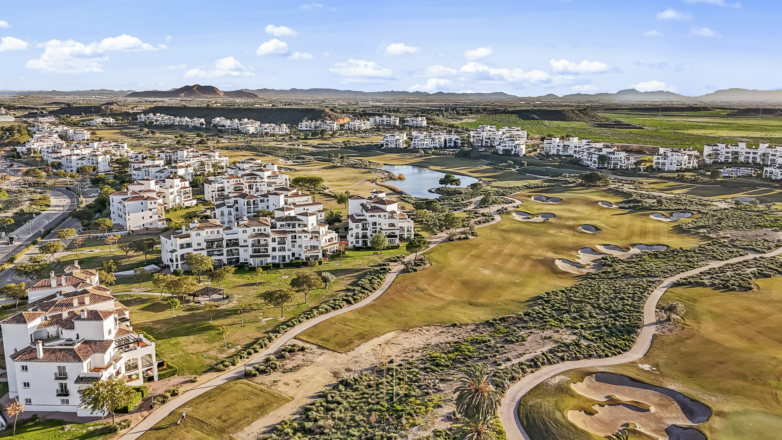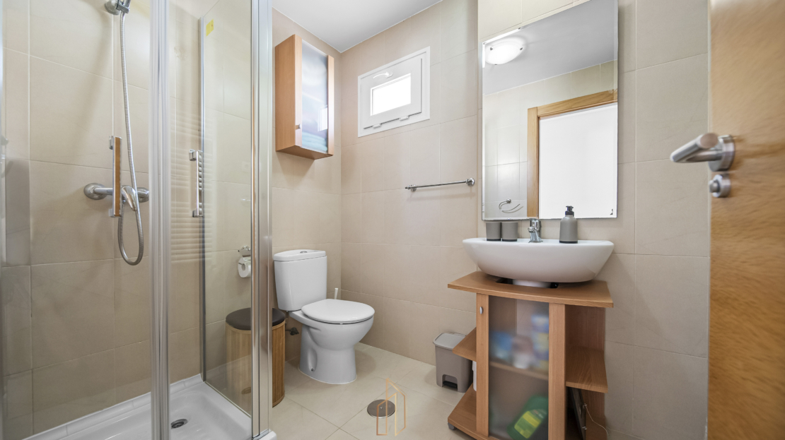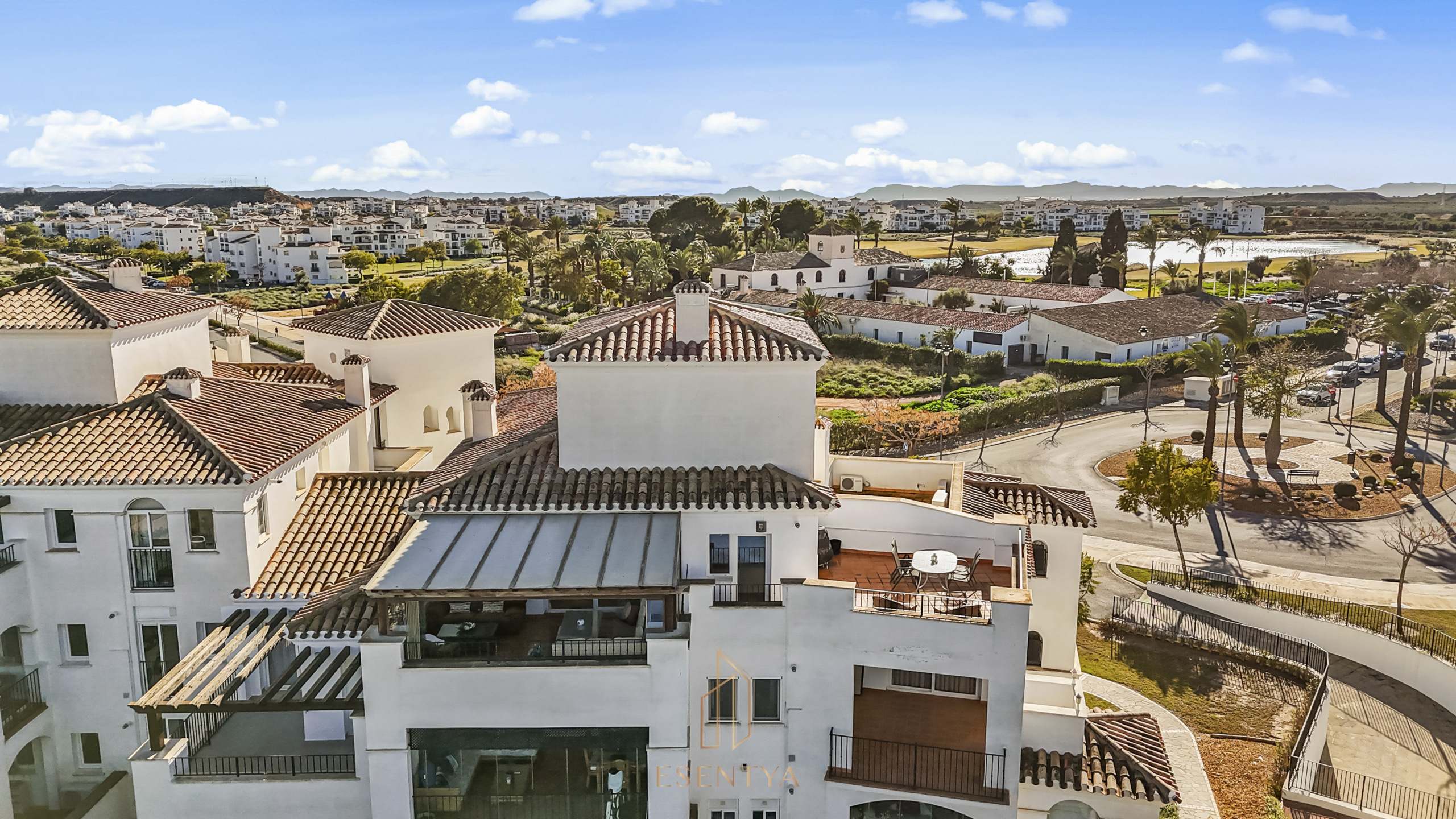 Penthouse apartment with an exceptional location, situated in immediate proximity to the heart of Hacienda Riquelme Golf Resort, with the clubhouse, pro shop, cafés, grocery store, and restaurant just steps away. The golf course driving range is also located right outside the door.The apartment comprises a living room with access to a in built terrace currently used as an additional living area, a fully equipped kitchen with appliances and access to the terrace, two bedrooms, both with direct access to a south-facing terrace and fitted wardrobes, and two bathrooms, one with a shower and the other with a bathtub.The enclosed terrace makes the apartment feel particularly spacious and can easily be fully opened by sliding back the glass panels. Here you can enjoy views of the large communal pool and the golf course. What makes this property especially unique is that, in addition to the enclosed terrace, it also offers a large open terrace where you can enjoy the sun throughout the day.The apartment also has exclusive use of the spacious hallway on this floor. The building is equipped with an elevator, and the property includes a generous private parking space with a storage room.- Year built: 2007 – Living area: 83 m² – Terraces: 70 m² – Bedrooms: 2 – Bathrooms: 2 – Community fees: 620€ per quarter – IBI: 339€ a yearDistances: – Murcia City: 32 km – Cartagena City: 47 km – Beach: 21 km – Corvera Airport: 21 km – Alicante Airport: 85 km