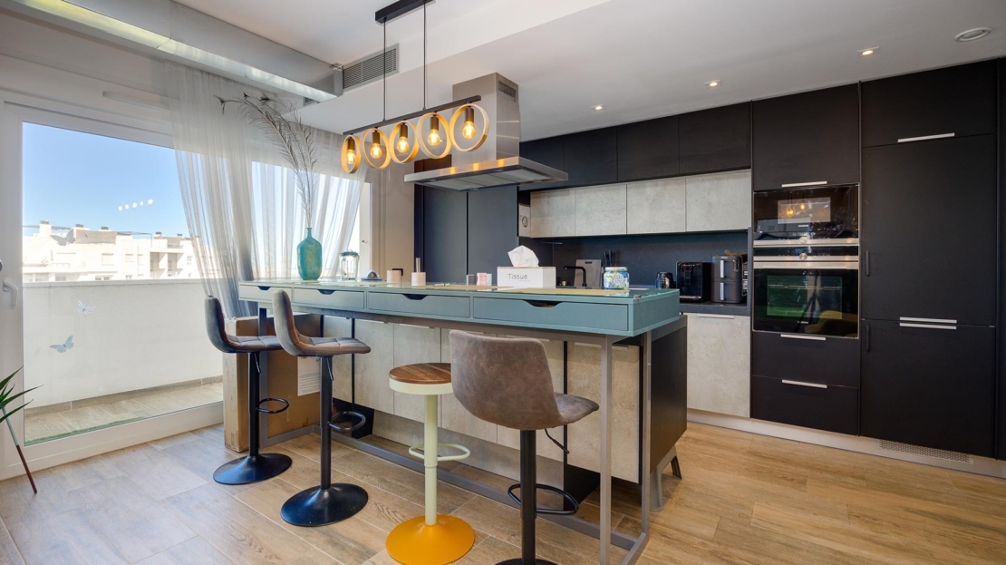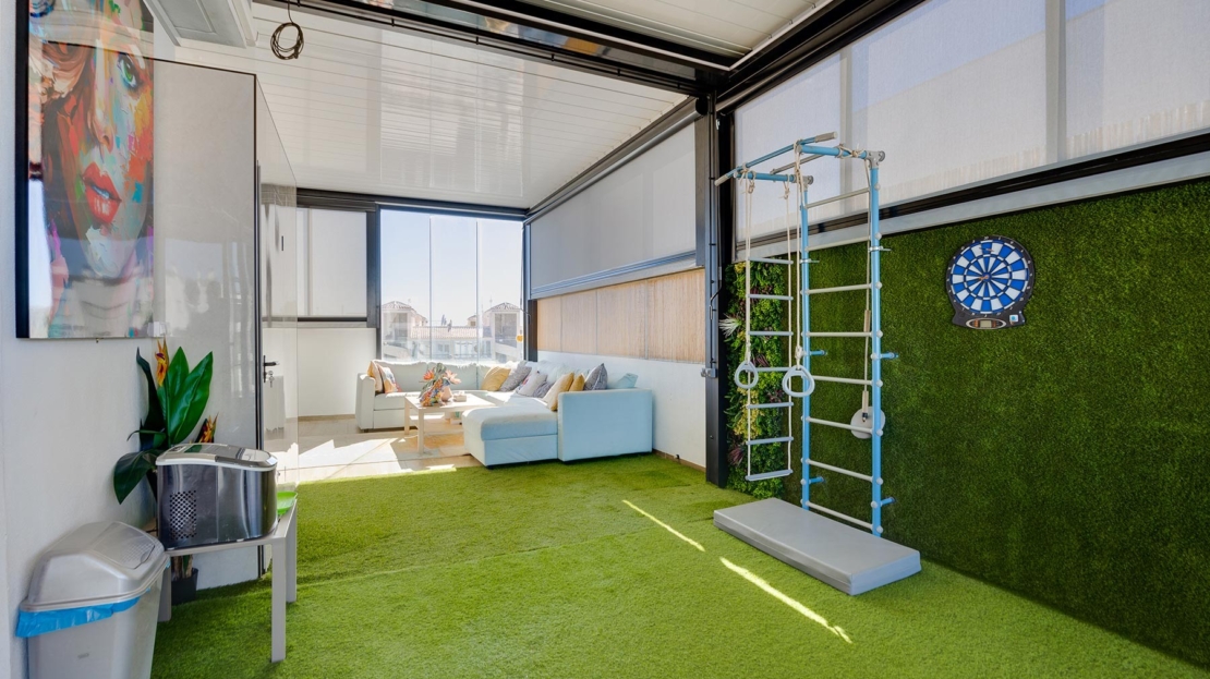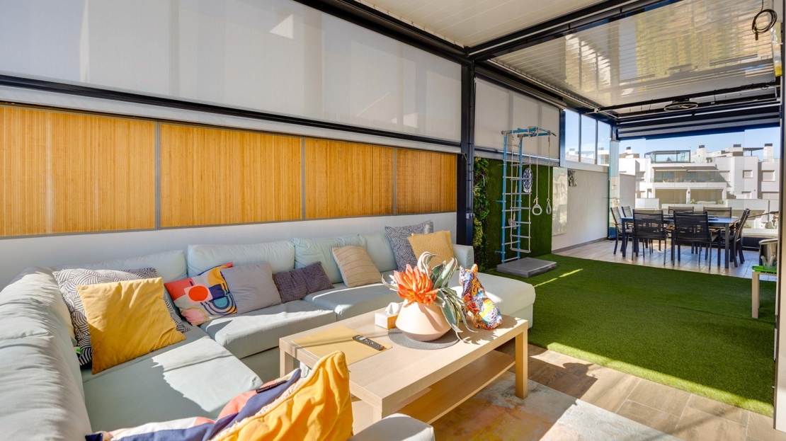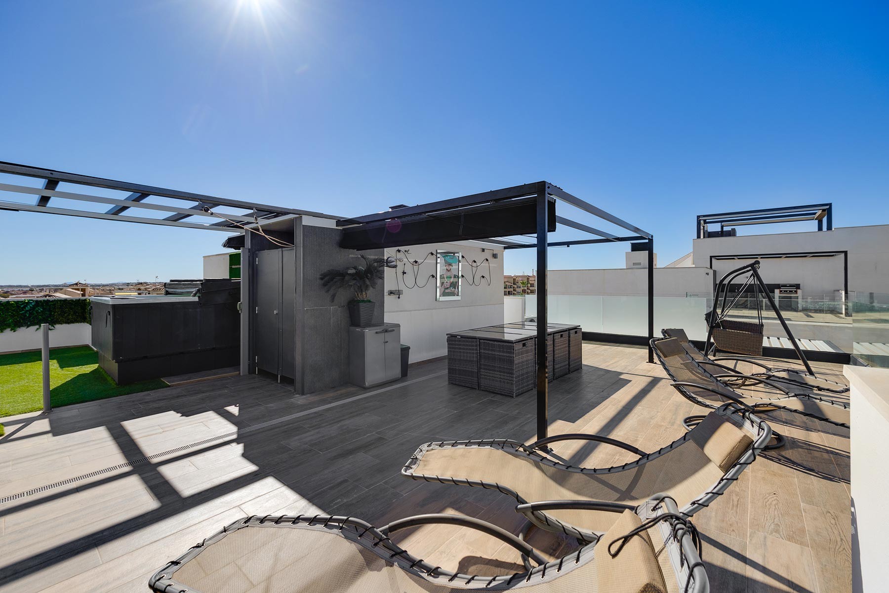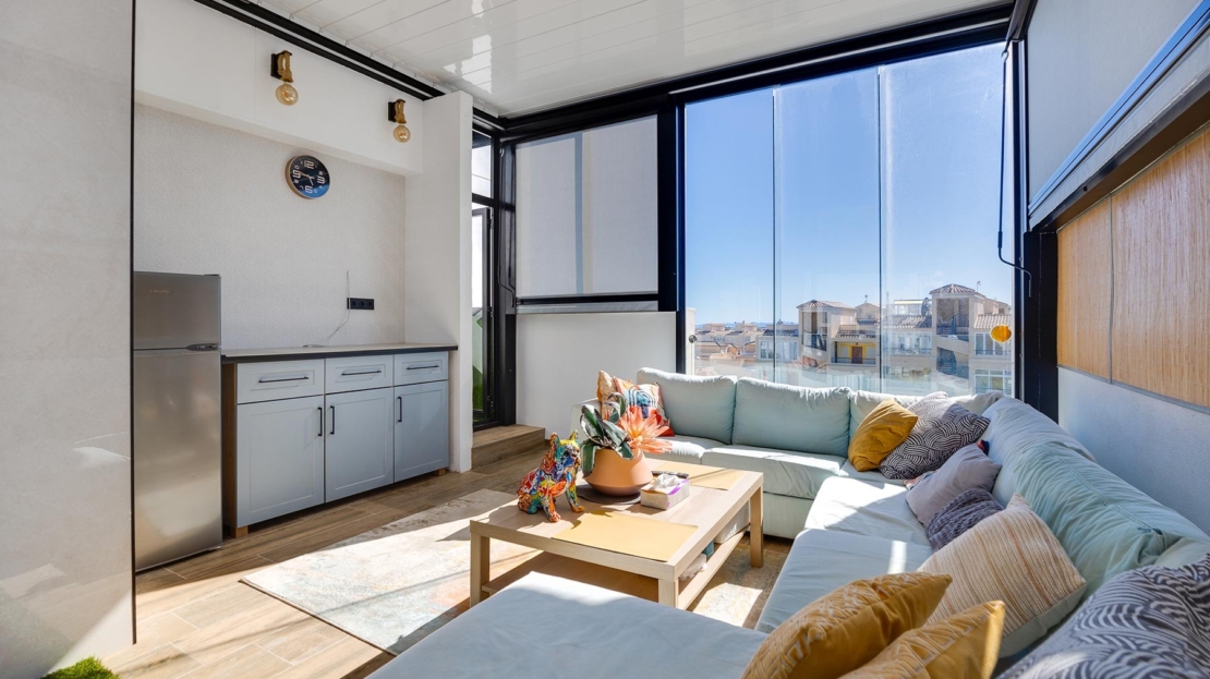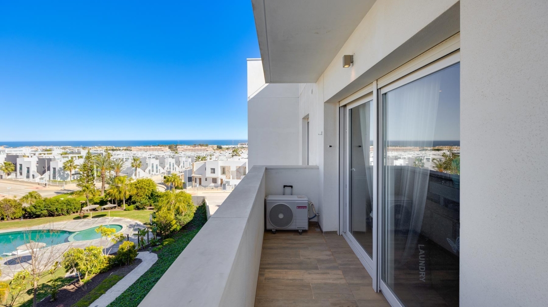 Discover this stunning , nearly new penthouse in Punta Prima (Orihuela Costa) , located in the prestigious Residencial Bali residential complex, a unique opportunity to enjoy luxury, privacy and Mediterranean lifestyle just steps from the sea and all amenities.The property features 3 bedrooms and 2 bathrooms , with a modern, functional, and bright design, where every space has been carefully considered for everyday comfort. The kitchen opens onto a pleasant terrace overlooking the communal pool and the sea , creating the perfect atmosphere for relaxation.One of its great attractions is its spectacular 95 m² private rooftop solarium , an exclusive space with open views of the sea and the surroundings , equipped with a jacuzzi and summer kitchen , ideal for enjoying the Mediterranean climate all year round.The penthouse is sold fully furnished and equipped , ready to move in, and also includes a parking space and storage room in an underground garage , providing maximum convenience.The residential complex is private and gated , and offers complete communal areas with spacious gardens, communal swimming pools, jacuzzi, gym and sauna , creating a perfect environment for both rest and well-being.Located just minutes from the beaches of Punta Prima Beach , near the renowned Zenia Boulevard shopping center and adjacent to golf courses such as Villamartín Golf , this penthouse combines location, quality, and exclusivity in one of the most sought-after areas of the Costa Blanca . Furthermore, Alicante-Elche Airport is approximately 45 minutes away, providing excellent connections.If you are looking for a penthouse with a solarium and sea views in Orihuela Costa , this property is an exceptional opportunity to enjoy a privileged life by the Mediterranean .Contact Sunnier Homes and discover your new home in Punta Prima.
