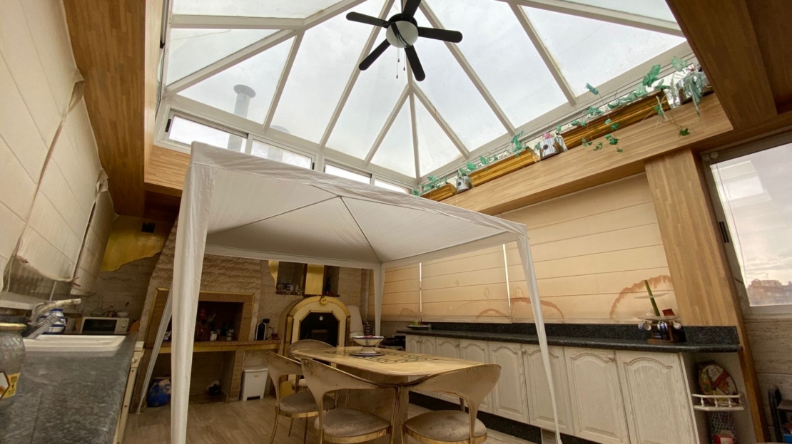 200 m² Penthouse with Private Solarium and Sea Views in TorreviejaFully furnished, high-category penthouse located just 8 blocks from the beach. Bright and spacious, with excellent layout and natural light throughout.Main Level:Large master bedroomEn-suite bathroom with hydromassage bathtubKitchen with breakfast bar integrated into an open-plan multifunctional living areaLiving room with gas fireplaceUpper Level (Private Solarium):Fully equipped winter kitchenBuilt-in BBQ and forged-iron ovenRelaxation lounge with additional bathroom and hydromassage tub/jacuzziLarge covered galleryOpen terrace with sea viewsBuilding with elevator.Small cosmetic touch-ups to be completed by buyer.Ideal for permanent living or as a high-value property for tourist rental investment.