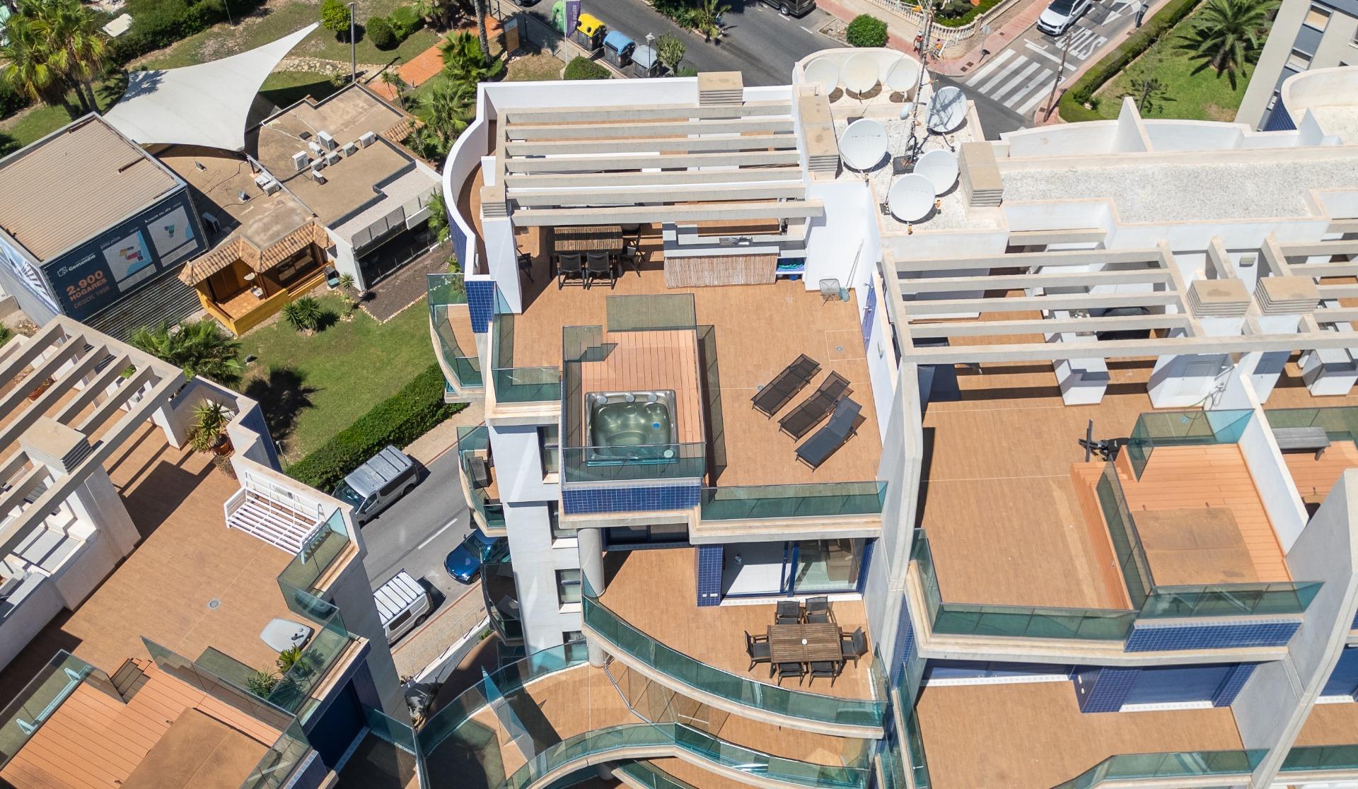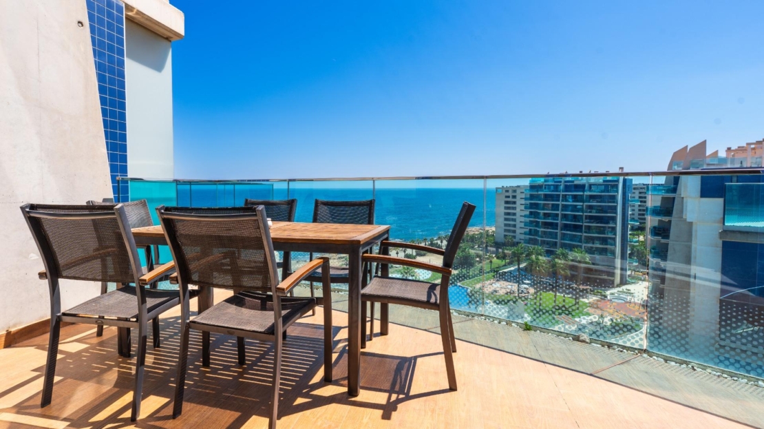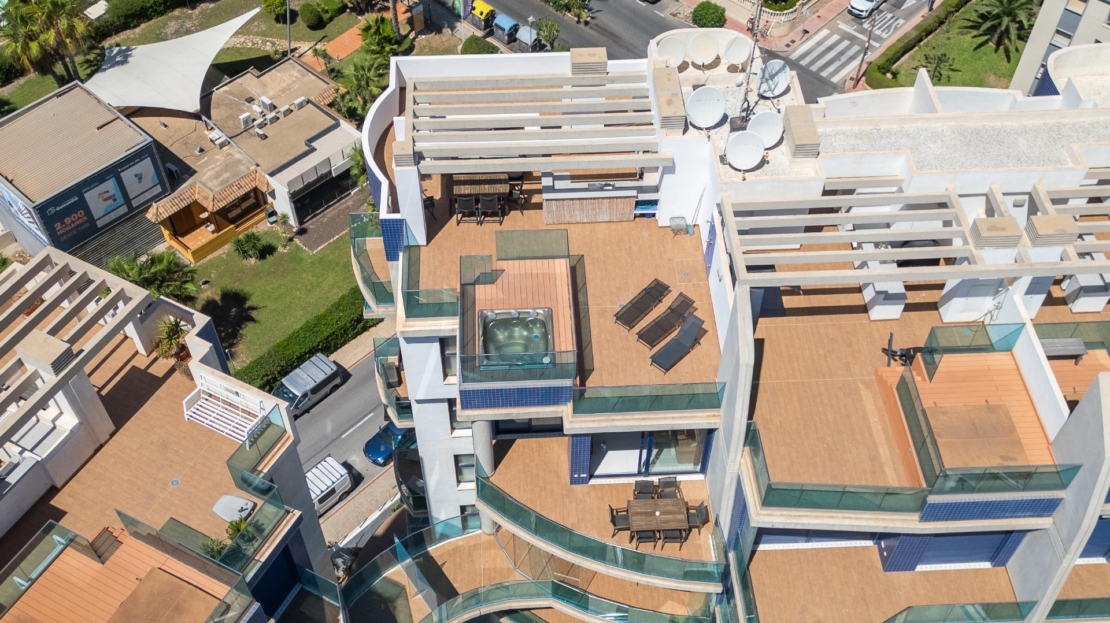 Luksusowy Penthouse w Pierwszej Linii Morza – Sea Senses, Punta Prima Ekskluzywny penthouse o powierzchni 124 m², położony w pierwszej linii morza, w prestiżowym kompleksie mieszkaniowym Sea Senses w Punta Prima (Torrevieja). Wyjątkowa nieruchomość łącząca nowoczesny design, komfort oraz spektakularne panoramiczne widoki na Morze Śródziemne. Nieruchomość oferuje 3 przestronne sypialnie oraz 2 w pełni wyposażone łazienki, z nowoczesnym i jasnym układem pomieszczeń. Przestronny salon z jadalnią w otwartym układzie prowadzi na imponujący taras z bezpośrednim widokiem na morze, idealny do korzystania ze śródziemnomorskiego klimatu przez cały rok. W pełni wyposażona kuchnia wyróżnia się wysoką jakością wykończeń i funkcjonalnością. Penthouse znajduje się na 9. piętrze, co zapewnia prywatność, doskonałe doświetlenie oraz niezakłócone widoki. W cenie znajduje się miejsce parkingowe. Kompleks oferuje luksusowe udogodnienia, takie jak baseny infinity, zadbane ogrody, siłownia, spa, całodobowa ochrona oraz bezpośredni dostęp do promenady nadmorskiej. Doskonała lokalizacja, zaledwie kilka kroków od plaży, restauracji i wszystkich usług, z bardzo dobrymi połączeniami komunikacyjnymi. Idealna jako stałe miejsce zamieszkania, drugi dom lub inwestycja premium.