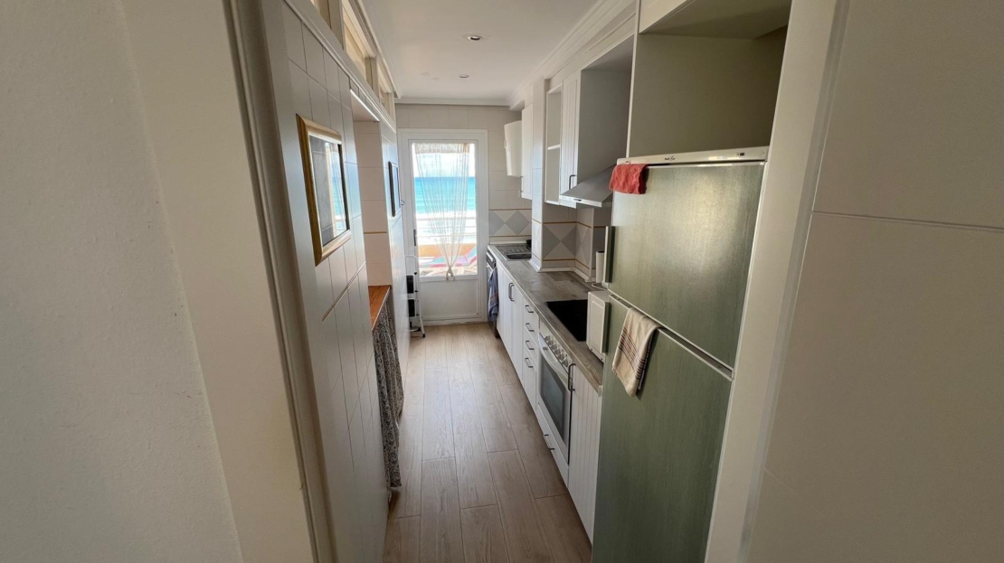 This beachfront penthouse in La Mata presents itself as an intimate and luminous retreat, designed for living facing the Mediterranean with a constant sense of seclusion and relaxation. Located at number 6 Calle Mayor, it integrates seamlessly into the heart of the small town of La Mata, with its coastal village atmosphere, terraces, local shops, and the tranquil lifestyle that characterizes this area north of Torrevieja. From the moment you enter the apartment, the presence of the sea influences everything: the light, the sounds, the breeze that flows in from the terrace, and the way every square meter is used to direct your gaze toward the horizon. It is a penthouse designed for one or two people who value the quality of the surroundings more than size, who prefer having breakfast to the sound of the waves rather than having soulless, unused square footage. The central element of the entire apartment is the terrace, which acts almost as another room, open to the sky and the sea, rising above the promenade and the golden sand of La Mata. By day, it becomes the place where most of the time is spent: a light table for breakfast in the sun, a couple of comfortable armchairs for reading or working on a laptop, and plants that add greenery to the dominant blue of the landscape. The Mediterranean opens up directly ahead, unobstructed, allowing you to contemplate how the sea changes with the time of day and the season: calm and bright in summer mornings, silvery in winter sunsets, and more intense and profound when the waves rise. The penthouse’s height provides privacy from the promenade and the beach, so you can enjoy coastal life without sacrificing your privacy. As evening falls, the terrace transforms into a perfect setting for quiet dinners, candlelight, and leisurely conversations while the sky is painted in shades of orange and pink. The sound of the sea arrives softly, mingling with the distant murmur of the bars and restaurants along the seafront, creating a constant yet relaxing soundtrack that envelops the entire apartment. It’s a space that invites you to entertain a couple of friends for a casual evening or to enjoy the silence and the breeze in solitude. In summer, this terrace practically becomes the house’s living room, allowing you to spend most of the day outdoors, with the feeling of being on a private deck overlooking the sea. The interior of the house complements this privileged connection with the outdoors. From the living area, the intention to orient everything towards the terrace and the sea is clear, prioritizing light and visual continuity. Large glazed openings allow natural light to flood the main room for most of the day, reducing the need for artificial lighting and creating a warm, welcoming atmosphere that changes with the time of day. The ideal decor here is simple, clean, and functional, with few but well-chosen elements, letting the view outside take center stage. A comfortable sofa, a side table, and some low furniture are enough to structure the space without cluttering it. The kitchen, visually integrated into the living area or located in an adjacent, easily accessible space, is designed to serve a practical and relaxed lifestyle. It’s not a kitchen intended for grand banquets, but rather for the everyday needs of a person or couple who enjoy preparing breakfasts overlooking the sea, light lunches after a morning at the beach, or simple dinners that are then enjoyed on the terrace. The proximity to the sea suggests a way of life where fresh fish, market-fresh fruits and vegetables, and Mediterranean cuisine set the pace. The kitchen becomes a comfortable and organized passageway, uncluttered yet ready to efficiently meet daily needs.