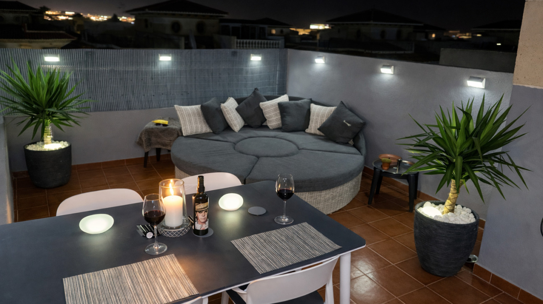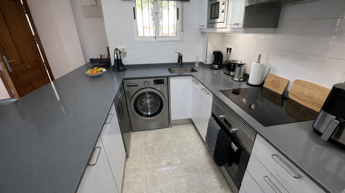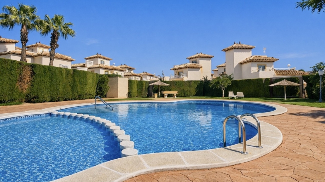 Fully Renovated 2 Bedroom Quad – La Zenia, Orihuela CostaStylish Living in the Heart of La ZeniaThis beautifully fully renovated 2-bedroom quad townhouse offers an exceptional blend of modern comfort, Mediterranean charm, and unbeatable location on the Costa Blanca. Situated just a 15-minute walk from La Zenia Boulevard, one of the largest shopping and leisure complexes in the region, this property places you right at the centre of everything Orihuela Costa has to offer.Whether you are looking for a permanent residence, a holiday retreat, or a high-potential rental investment, this move-in-ready home delivers lifestyle and convenience in one of the most sought-after areas along Spain’s southern coastline.________________________________________Prime Location – Lifestyle at Your DoorstepLa Zenia is renowned for its vibrant atmosphere, stunning beaches, and outstanding amenities, making it one of the most desirable destinations on the Costa Blanca.From this property, you can enjoy:• 15-minute walk to La Zenia Boulevard – offering a wide selection of shops, restaurants, cafés, entertainment, and family activities• Close proximity to Blue Flag beaches, including La Zenia Beach, Playa Flamenca, and Cabo Roig• Easy access to local supermarkets, medical centres, schools, and public transport• A variety of international and Spanish restaurants within minutes• Excellent road connections to Torrevieja, Alicante, and Murcia• Several top golf courses nearby, including Villamartín, Campoamor, and Las RamblasThis location perfectly balances relaxed coastal living with modern convenience, making it ideal for year-round residents and holidaymakers alike.________________________________________Property Features & Outdoor LivingThe townhouse provides 86 m² of usable living space, thoughtfully designed to maximise comfort and light.At the front of the property, a welcoming covered terrace with awning and wind protection creates the perfect outdoor space for morning coffee, al fresco dining, or simply enjoying the Mediterranean climate.To the rear, a charming patio garden with orange trees adds a touch of traditional Spanish character while offering a peaceful private retreat.The property also benefits from:• A spacious private solarium on the top floor – ideal for sunbathing, BBQs, or evening entertaining• A practical storage room on the solarium level• Well-maintained communal areas within a secure urbanisation• Access to a communal swimming pool, perfect for cooling off on warm summer days________________________________________Modern Interior – Fully Renovated ThroughoutThe entire property has been carefully renovated by the current owners for their own use, ensuring high-quality finishes and contemporary style throughout.Ground Floor: Open, Bright & FunctionalInside, the home features:• A bright open-plan living and dining area with a decorative fireplace• A modern, fully equipped open kitchen• The option to create a third bedroom on this level if required• A convenient guest toiletThe layout is practical and inviting, making it ideal for both everyday living and hosting guests.First Floor: Comfortable BedroomsUpstairs, you will find:• Two spacious double bedrooms• One bedroom with a private terrace• A modern family bathroom with walk-in shower and double vanityThe design ensures privacy, comfort, and plenty of natural light.Top Floor: Private SolariumThe large rooftop solarium offers fantastic open space with storage, making it perfect for:• Sunbathing and relaxation• Outdoor dining and entertaining• Enjoying views and fresh sea air________________________________________A Fantastic Investment OpportunityBuilt in 2003 and part of a well-kept community, this property is:• Move-in ready• Easy to maintain• Highly rentable due to its location• Ideal as a holiday home or permanent residenceWith its proximity to beaches, shopping, dining, and leisure activities, demand for properties in La Zenia remains consistently high.________________________________________Your Mediterranean Lifestyle AwaitsThis fully renovated quad townhouse in La Zenia offers the perfect combination of modern living, prime location, and relaxed coastal lifestyle.Whether you are seeking sunshine, sea, and convenience – this property has it all.