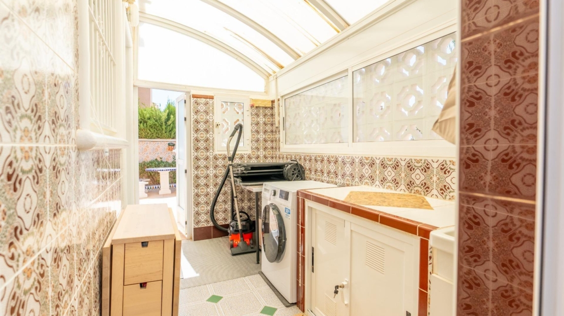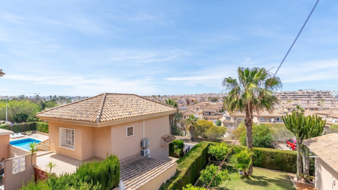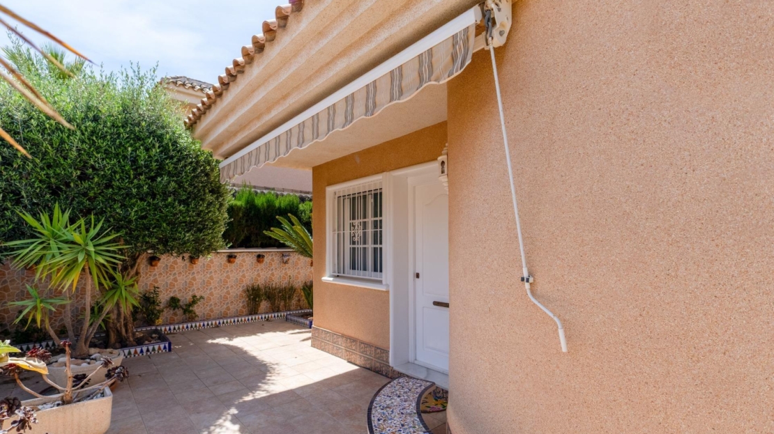 Przedstawiamy w pełni wyremontowany, dwupiętrowy dom wolnostojący z prywatnym ogrodem oraz miejscami parkingowymi na działce, położony w Orihuela Costa – jednym z najbardziej pożądanych rejonów na Costa Blanca. Nieruchomość znajduje się w prestiżowej, cichej dzielnicy mieszkalnej, gdzie można w pełni cieszyć się klimatem śródziemnomorskim w spokoju i zgodzie z naturą, łącząc relaks z aktywnym i zdrowym stylem życia. Dom wchodzi w skład ekskluzywnej osady zamkniętej z basenem użytkowym oraz wydzieloną strefą parkingową. To prawdziwie wymarzona okolica do zamieszkania – idealne połączenie śródziemnomorskiego klimatu, bliskości natury i spokoju, co czyni ją doskonałym wyborem zarówno na stałe miejsce zamieszkania, jak i na inwestycję. Do plaży – zaledwie 5 minut jazdy samochodem, a do największego centrum handlowego na Costa Blanca – La Zenia Boulevard – zaledwie 3 minuty. Wchodząc na posesję, powita nas pięknie zagospodarowany, dobrze utrzymywany ogród z strefą wypoczynku oraz kilka miejsc parkingowych bezpośrednio na działce. Układ wnętrz jest bardzo funkcjonalny: jest to wolnostojący, ogrodzony dom z dwoma kondygnacjami i własnym ogrodem. Wewnątrz znajduje się przestronny, świeżo wyremontowany salon, oddzielna, w pełni wyposażona kuchnia z wbudowaną pralnią (pomieszczenie gospodarcze), co zapewnia wygodę i porządek w codziennym użytkowaniu. Dom oferuje 3 pomieszczenia sypialne z meblami oraz 2 nowoczesne łazienki, całkowicie odnowione i wyposażone w podgrzewane podłogi. Dodatkowo: duża, jasna taras (ok. 20 m²) z otwartym, niezabudowanym widokiem. Orihuela Costa to dynamicznie rozwijające się miasto nadmorskie na Costa Blanca, popularne zarówno jako miejsce wypoczynku, jak i do życia przez cały rok. Region stale się rozwija – powstają tu nowe szkoły, obiekty sportowe, infrastruktura oraz nowoczesne osiedla mieszkalne. Dzięki łagodnemu, słonecznemu klimatowi wypoczynek nad morzem możliwy jest przez cały rok. To spokojne i bezpieczne miejsce – idealne zarówno jako stałe miejsce zamieszkania, jak i jako atrakcyjna inwestycja majątkowa.