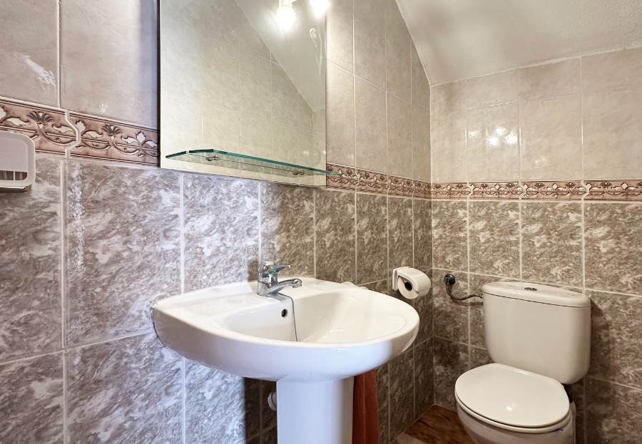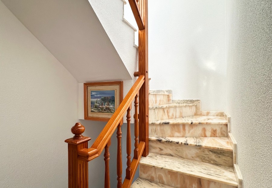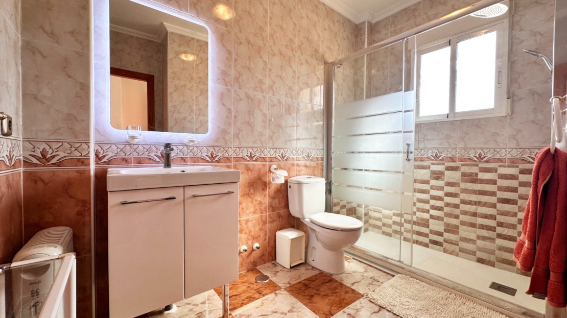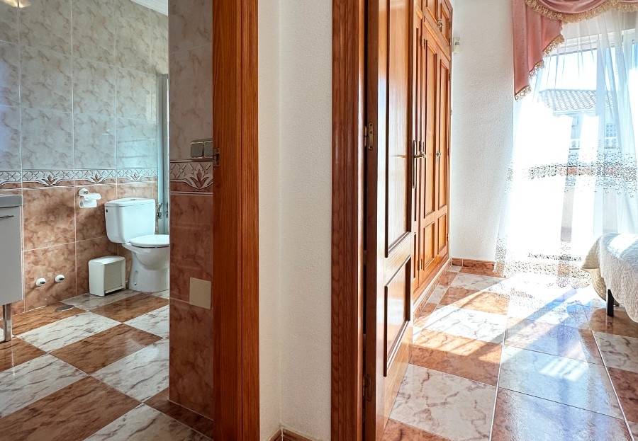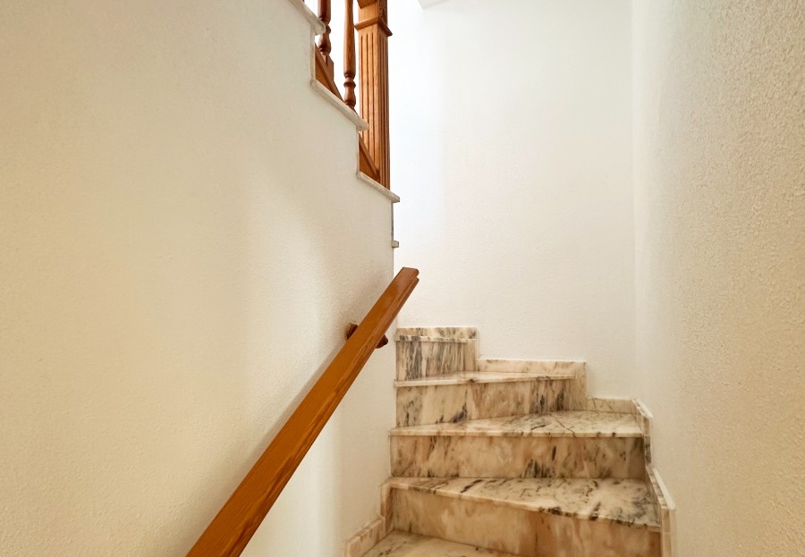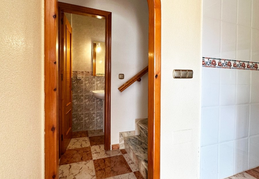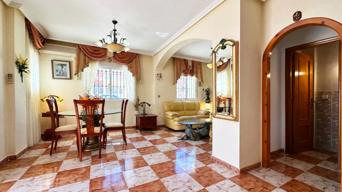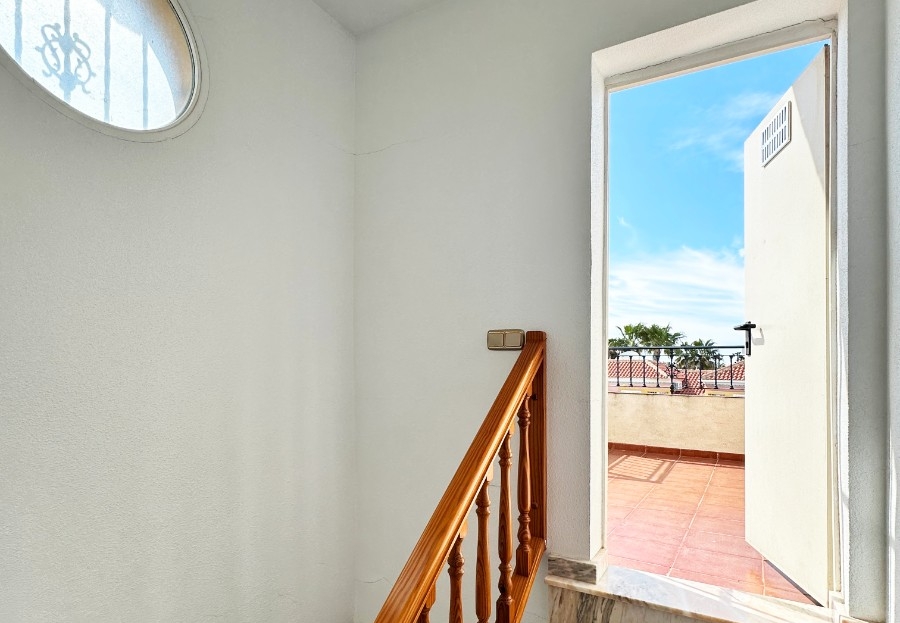 This beautiful two-bedroom, two-bathroom villa is ideally located in the highly desirable area of Cabo Roig, offering a perfect combination of comfort, style, and Mediterranean lifestyle. Set within a well-maintained community, the property enjoys a peaceful setting while being within easy walking distance of local amenities, making it an excellent choice for both permanent living and holiday use.The villa benefits from a generous private garden area and a front-facing sun terrace, ideal for outdoor dining, relaxing, and entertaining. These outdoor spaces provide the perfect environment to enjoy the region’s year-round sunshine. A standout feature of the property is the impressive roof solarium, designed as a true suntrap. This generous space is perfect for sunbathing, hosting guests, or simply unwinding while enjoying the spanish way of life.Upon entering the property, you are welcomed into a bright and spacious lounge and dining area, designed to maximise natural light and comfort. The room is finished with beautiful tiled flooring throughout, enhancing the sense of space while providing practicality and ease of maintenance. The open and airy layout creates a welcoming atmosphere, ideal for both relaxing and socialising.The fully fitted kitchen is offering both functionality and a convenient breakfast bar. The kitchen provides ample storage and workspace, making it ideal for everyday cooking and entertaining alike.The upper level of the property houses two spacious bedrooms, the master bedroom benefiting from their own private sun balcony, allowing plenty of natural light and pleasant outdoor space. The master bedroom is equipped with air-conditioning, ensuring comfort throughout the warmer months. A family bathroom is also located on this level, finished to a good standard and conveniently positioned to serve both bedrooms.Residents of the community enjoy access to a well-maintained communal swimming pool, perfect for cooling off during the summer and relaxing in a tranquil environment. The property is ideally situated within a short walking distance of a variety of bars, restaurants, and local services, offering convenience without the need for a car.The location is particularly attractive, with beautiful beaches just a five-minute drive away, several renowned golf resorts close by, and excellent transport links. Alicante and Murcia airports can both be reached in approximately fifty minutes, making the property easily accessible for both residents and visiting guests.This charming villa offers an excellent opportunity to enjoy coastal living in one of the Costa Blanca’s most sought-after areas, whether as a permanent residence, holiday home, or investment property.