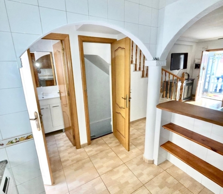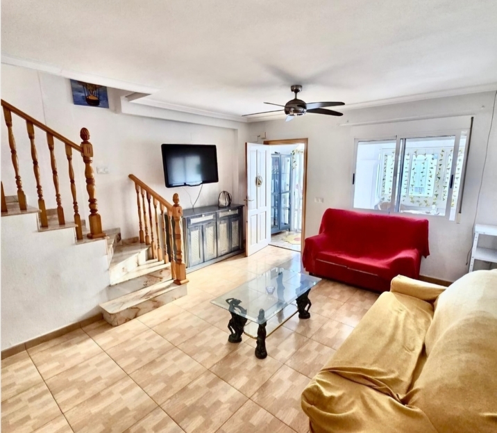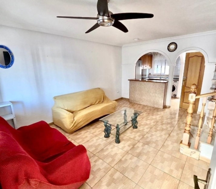 TOWNHOUSE FOR SALE IN ORIHUELA COSTA.We are pleased to offer for sale this townhouse in the Horazonte area of Orihuela Costa, it has 3 bedrooms and 2 bathrooms, it is distributed over 3 floors, On the main floor you have a front terrace that leads in to the living/dining area, a fully fitted kitchen and a guest toilet. The second floor it has 2 bedrooms a family bathroom and a small terrace, on the top floor is the master bedroom with en-suite bathroom and a large solarium.Then you have an underground floor which is used as the garage/ storage room, this area could easily be converted to create a 4th bedroom. The property also benefits from a community swimming pool and green area. The property come with the furniture included and also has air conditioning.The property offers 76 m² built area and 105 m² total area, comfortably distributed over 3 floors, providing spacious and bright living areas throughout.Layout & Key Features:Covered porch, perfect to enjoy all year roundSpacious and bright living-dining roomFully equipped kitchen with breakfast bar3 bedrooms1 full bathroom with walk-in shower1 full bathroom with bathtub1 additional guest toiletPrivate terraceAir conditioningCommunal swimming poolParking spacePrivate underground garage with space for 2 carsPrime Location:1 minute from leisure areas and amenities2.5 km from Punta Prima Beach6 km from Las Ramblas Golf65 km from Alicante AirportExcellent opportunity in Orihuela Costa, ideal both as a permanent residence or as an investment on the Costa Blanca.A property with all comforts, excellent connections, and ready to enjoy the Mediterranean lifestyle. Contact us for a viewing today.
