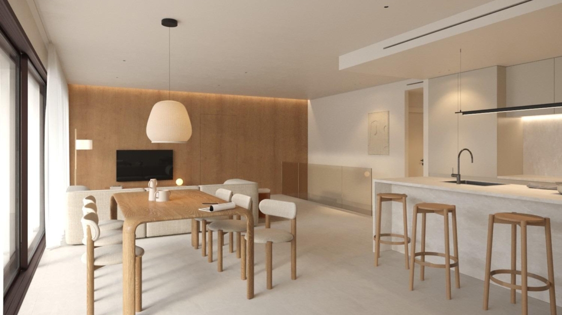 Wewnątrz wille oferują jasną i elegancką otwartą część dzienną i jadalnię z nowoczesną zintegrowaną kuchnią i półwyspem. Duże przesuwane drzwi z wpuszczanymi szynami tworzą płynne przejście między przestrzenią wewnętrzną i zewnętrzną, zapewniając bezpośredni dostęp do ogrodu, basenu i parkingu. Ten przemyślany układ zwiększa ilość naturalnego światła i tworzy przyjazną atmosferę do codziennego życia i rozrywki.