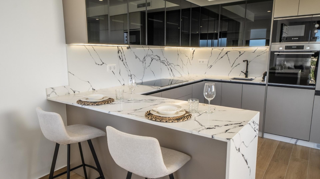 Wszystkie wille posiadają otwartą kuchnię połączoną z salonem, duże tarasy z otwartym widokiem, prywatny basen, prywatny ogród i parking na działce.