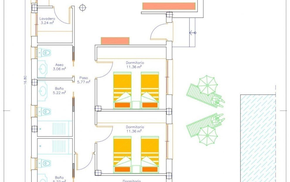 Wille są zaprojektowane na jednym poziomie z tarasami wokół niego i mają 3 sypialnie, w tym garderobę w głównej sypialni, 2 łazienki i toaletę.