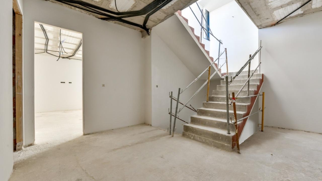 Kolejne piętro 190 m2 zamkniętej przestrzeni znajduje się poniżej poziomu działki, ale 3 metry powyżej poziomu ulicy, a zatem z naturalnym światłem. Można się do niego dostać windą lub schodami wewnątrz willi lub schodami na zewnątrz garażu, w tym drugim przypadku można dostać się tylko do zewnętrznych korytarzy, pomieszczenia z instalacjami lub głównych drzwi tego piętra, dzięki czemu konserwacja domu odbywa się bez konieczności wchodzenia do środka. Wewnątrz tego piętra znajdziemy 4 przestronne sypialnie, salon z angielskim patio o powierzchni 17 m2 ze schodami na działkę, pralnię, 2 łazienki, zewnętrzne korytarze o powierzchni 40 m2 i pomieszczenie z instalacjami.