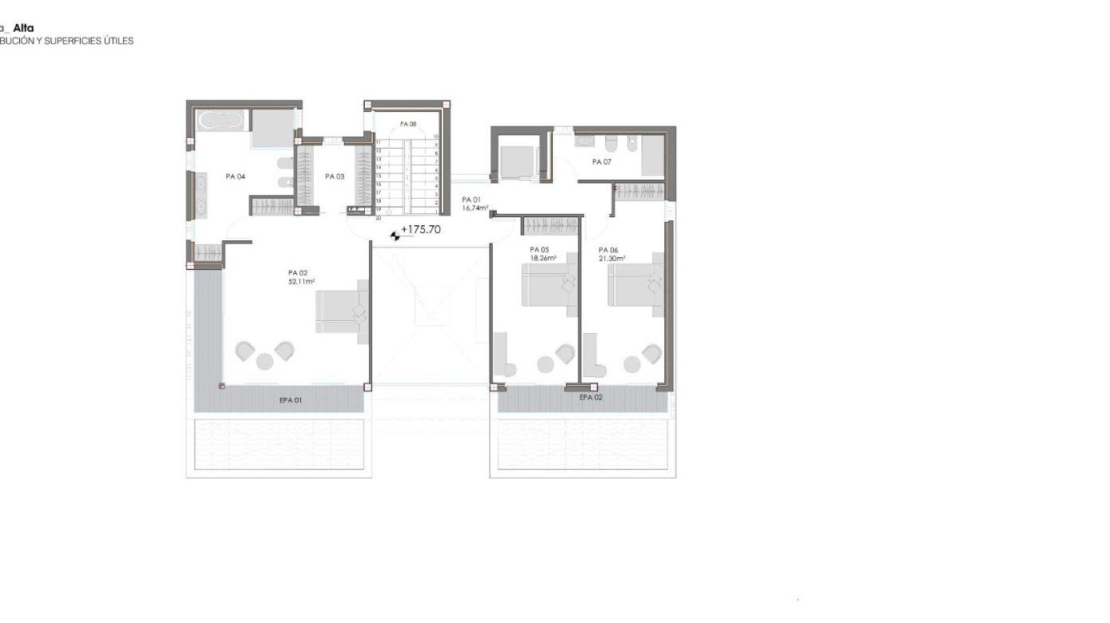 Do sypialni piętro mamy dostęp przez windę lub schody wewnętrzne, gdzie zobaczymy Master Bedroom ponad 50 m2 z łazienką, garderobą i tarasem, dwie sypialnie około 20 m2 każdy, łazienka i taras dla tych sypialni.