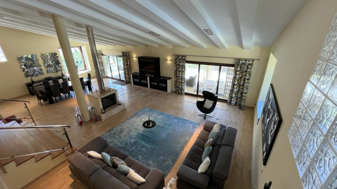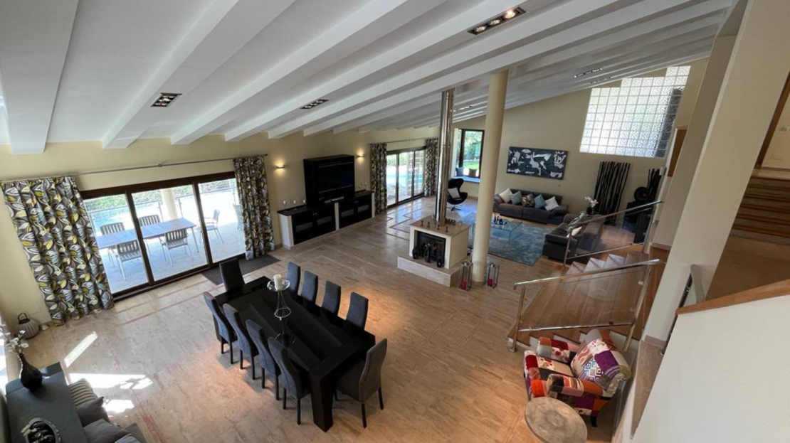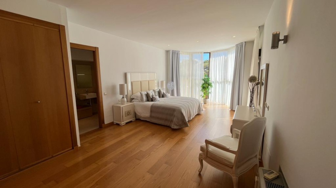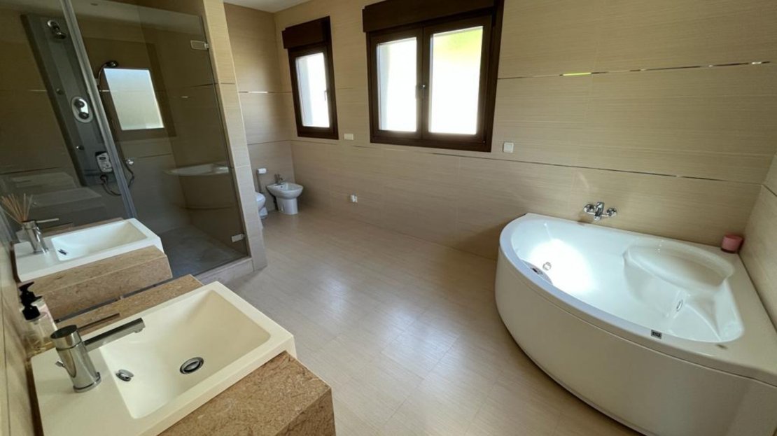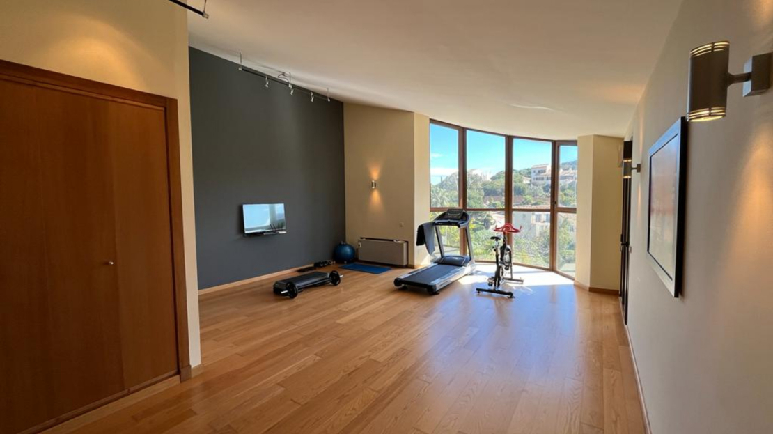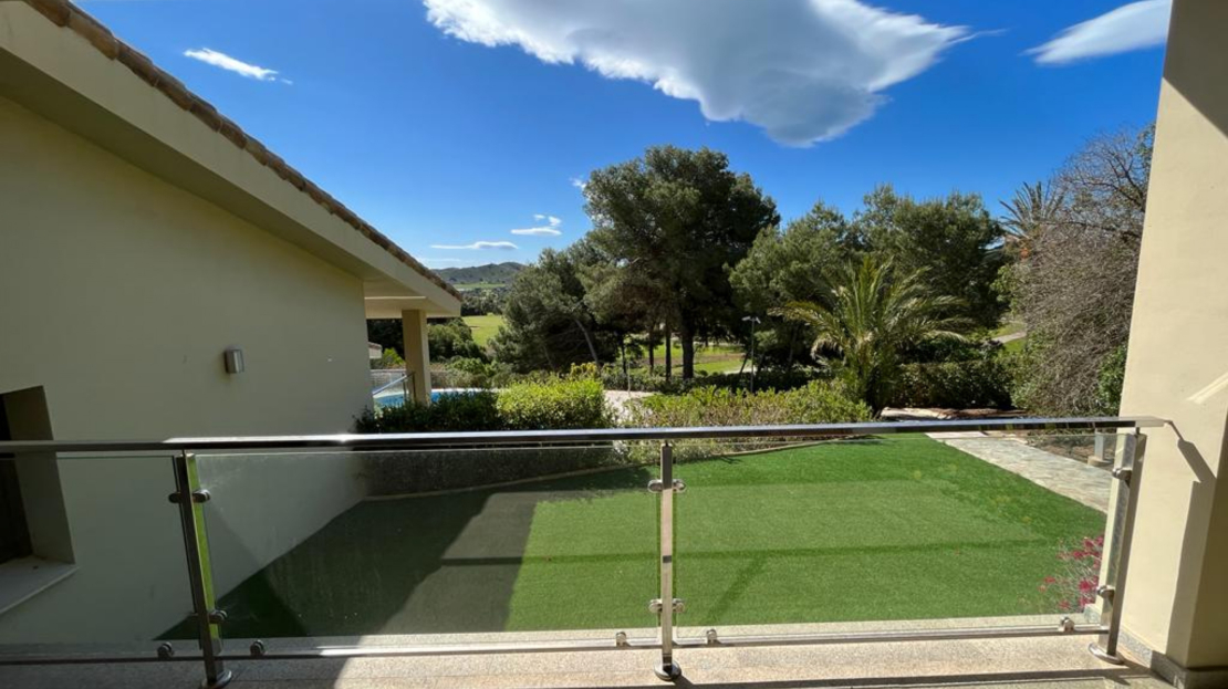 This luxury detached villa is frontline with stunning views over the North Course in La Manga Club. The property has private gates with video entry with a driveway leading down to the villa. There is a large garage with access to the house and ample parking space. The main entrance leads into the large, bright living/dining area which has windows on all three sides and glass doors leading out to the sun terrace and swimming pool area. The fully fitted kitchen has an island and american fridge freezer. There is also a pantry and laundry room. The villa has six bedrooms and five bathrooms spread around the house. The property is being sold fully furnished.Price shown excludes buying costs Cash buyer: add 10% Mortgage buyer: add 12%