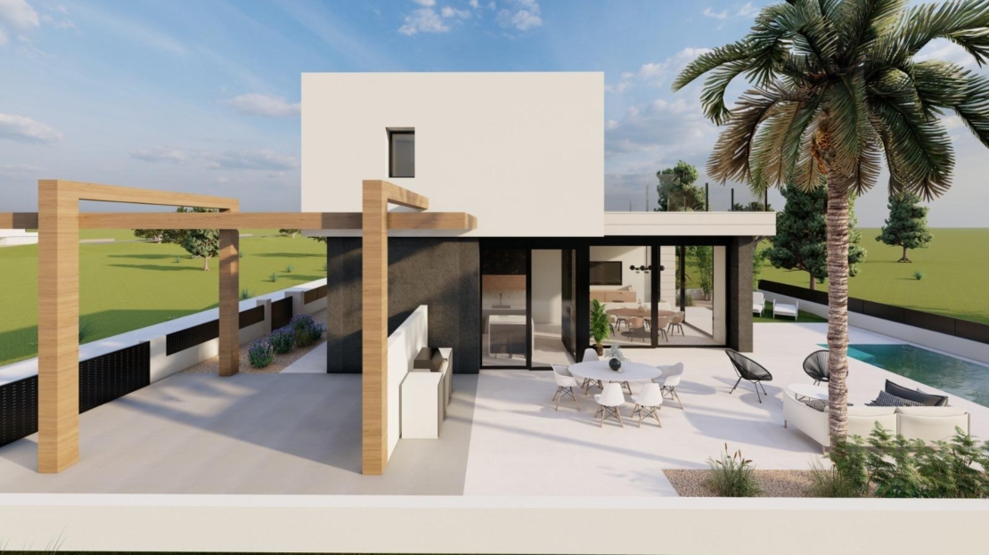 Nowe wille zbudowane na 2 piętrach, mają 3 sypialnie, 2 łazienki, toaletę dla gości, kuchnię na otwartym planie z częścią wypoczynkową, wbudowane szafy, prywatny ogród z basenem i miejsce parkingowe przy drodze.