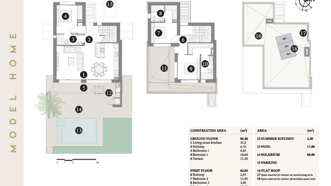 Ten przemyślany układ zapewnia komfort i prywatność, a jednocześnie oferuje przestronne przestrzenie zewnętrzne do rozrywki, spożywania posiłków lub po prostu cieszenia się śródziemnomorskim klimatem.