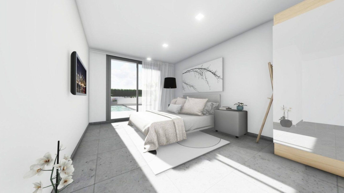 26 nowo wybudowanych nowoczesnych willi na parterze z solarium i prywatnym basenem, z 2 i 3 sypialniami, 500 metrów od plaż.
