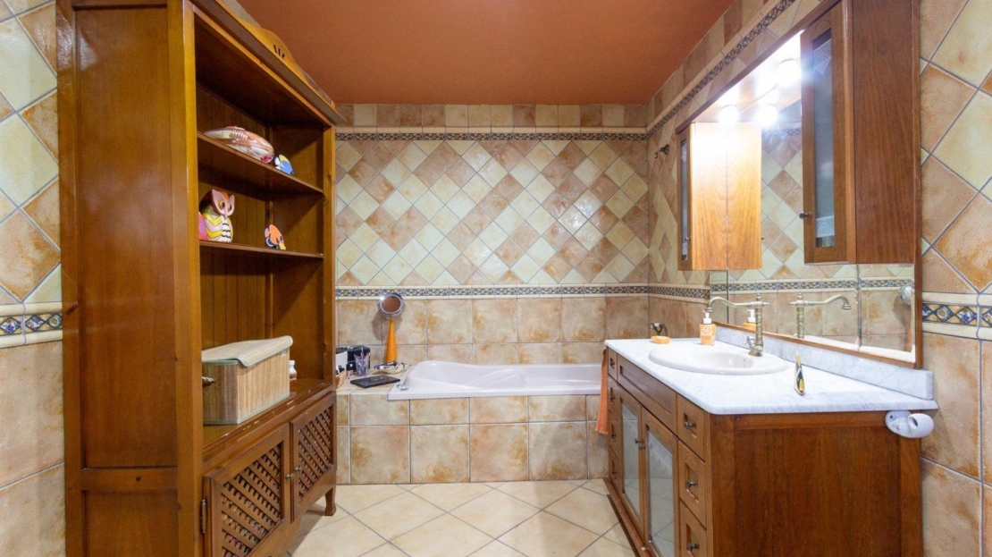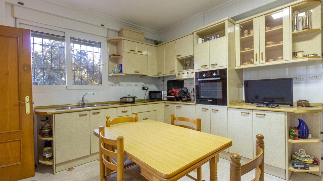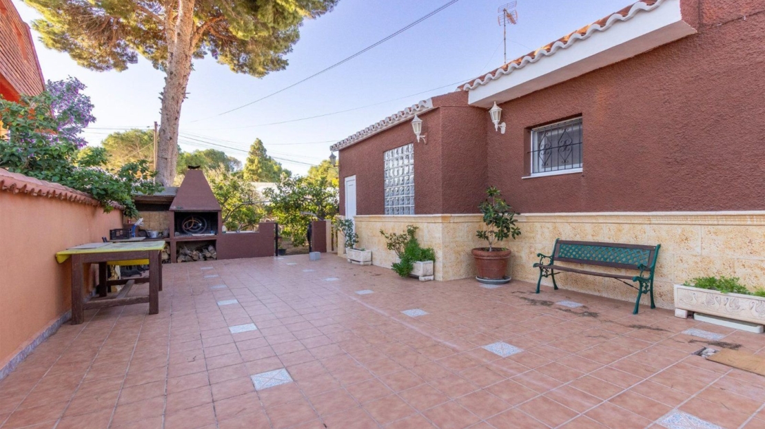 Ubicado en la tranquila y verde urbanización de Los Balcones, este chalet independiente destaca por su gran parcela de aproximadamente 900 m², ideal para disfrutar del estilo de vida mediterráneo. La propiedad combina comodidad, amplitud y encanto en un solo nivel, ofreciendo espacios bien distribuidos y múltiples comodidades. Características del exterior Parcela amplia y bien aprovechada: Incluye un huerto con árboles frutales que aportan frescura y encanto al entorno. Piscina privada: De 8×4 metros, con una gran zona alrededor para tumbonas, reuniones o juegos, complementada con una acogedora zona de barbacoa, ideal para disfrutar con amigos y familia. Terrazas: Varias terrazas rodean la vivienda, proporcionando diferentes espacios para relajarse, desayunar al aire libre o disfrutar de las vistas al jardín. Espacios de almacenamiento: Zonas específicas en el jardín para guardar muebles de verano, utensilios de piscina y herramientas, manteniendo la organización. Interior de la vivienda La vivienda se desarrolla en una sola planta para mayor comodidad y funcionalidad: 4 habitaciones dobles: Amplias y luminosas, perfectas para familias grandes o visitas frecuentes. 2 baños: Uno de ellos en suite, diseñado para mayor privacidad y confort. Gran salón-comedor: Un espacio diáfano con suficiente amplitud para separar cómodamente la sala de estar y el comedor. Este ambiente se completa con una chimenea, ideal para crear un rincón cálido y acogedor. Cocina independiente: Totalmente equipada, con espacio generoso para almacenamiento y una distribución práctica que facilita el día a día. Espacios adicionales Sótano habilitado: Una gran habitación con baño propio que puede adaptarse a múltiples usos, como estudio independiente, sala de juegos, gimnasio o habitación extra. Garajes y trastero: Espacio suficiente para más de 2 coches, además de un garaje adicional utilizado como trastero. Esta propiedad no solo destaca por sus amplias dimensiones y calidad constructiva, sino también por la versatilidad de sus espacios. La parcela ofrece un equilibrio perfecto entre zonas ajardinadas, funcionalidad y privacidad. Ubicado en la prestigiosa urbanización de Los Balcones, una de las mejores zonas residenciales de Torrevieja, este chalet independiente combina confort, privacidad y un entorno natural único. La urbanización se caracteriza por su abundante vegetación, árboles maduros y amplias zonas verdes, ofreciendo un ambiente tranquilo y agradable para disfrutar de la vida al aire libre. Este inmueble se encuentra en un entorno privilegiado, con acceso rápido a numerosas playas y calas de la Costa Blanca, que van desde los 5 hasta los 15 minutos en coche. Además, está a tan solo 5 minutos del centro de Torrevieja, lo que permite disfrutar de todas las comodidades y servicios de la ciudad sin renunciar a la paz de una zona residencial exclusiva. Los Balcones cuenta con una infraestructura completa: parques cuidados, pequeños centros comerciales, supermercados, zonas de ocio y el prestigioso hospital de Torrevieja, todo al alcance de la mano. Su ubicación estratégica, entre las urbanizaciones de Orihuela Costa y Torrevieja, facilita el acceso a una amplia oferta de actividades, tanto para el ocio como para la vida diaria. Este chalet es una opción ideal para quienes buscan una residencia cómoda, rodeada de naturaleza y con todas las comodidades de una ubicación céntrica, pero alejada del bullicio urbano.