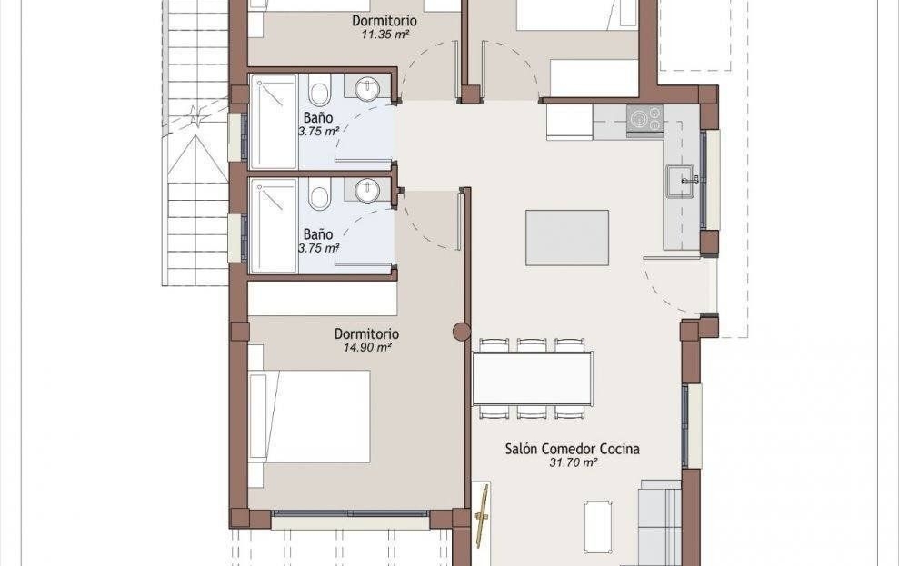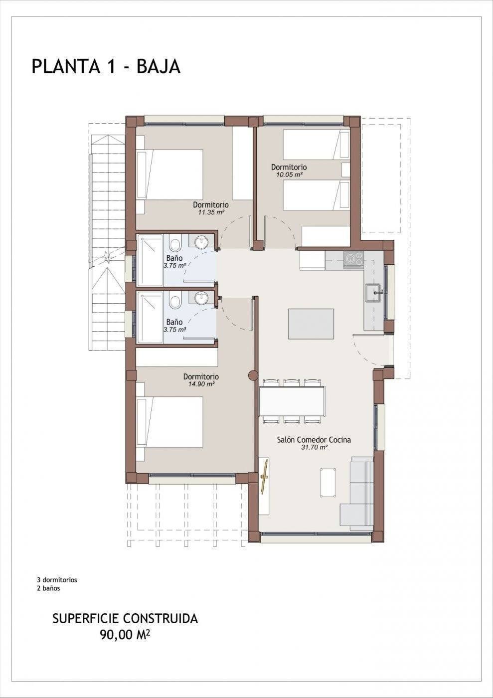 New Build mieszkalnych z niezależnych willi do wyboru dwa modele: podwójnej wysokości, z trzema sypialniami i trzema łazienkami i trzy sypialnie z dwiema łazienkami, wszystko na jednym piętrze.