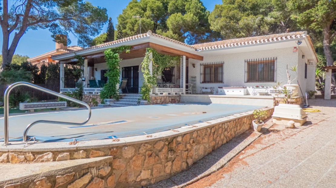 Nos complace ofrecer esta FABULOSA VILLA INDEPENDIENTE, que es de una sola planta, tiene una superficie construida interna de 268 m2, se asienta en una parcela de 800 m2 y está situada en una de las mejores ubicaciones de todo Campoamor, a menos de tres cien metros de la playa. No se lo pierda, ya que las propiedades en esta ubicación no salen a la venta con mucha frecuencia. Al entrar al terreno, tiene un camino grande a su derecha y un garaje al final, con un gran espacio para 4-5 autos, al lado tiene una hermosa piscina de 9 x 4 metros y a la izquierda de esta, está Un jardín bien diseñado, con una variedad de plantas y arbustos que aportan mucho color. La propiedad fue construida en 1971 y consta de seis dormitorios y cuatro baños. Al entrar en la propiedad, tiene un pasillo que va a su derecha y también hacia arriba y hacia su izquierda, inmediatamente a su izquierda está la sala de estar, que los propietarios han creado como sala de estar y comedor y hay una característica Chimenea, hay puertas que dan a una terraza cubierta con vistas al jardín. Volviendo al interior y más allá, se encuentra una cocina de buen tamaño, que está bien pensada, seguida de un cuarto de baño familiar. Al subir por esta parte del pasillo, a su derecha tiene armarios empotrados. y frente a ti tienes dos dormitorios de invitados de buen tamaño.Al regresar y girar hacia la entrada, el pasillo lo lleva a todas las otras habitaciones de este lado de la propiedad, a su izquierda tiene el tercer dormitorio de invitados, que tiene un tamaño decente, seguido por el segundo baño, a medida que continúa. Para seguir caminando, tiene el cuarto dormitorio a su derecha, frente a este está el quinto dormitorio de invitados que tiene su propio baño, seguido por último por el dormitorio principal que también tiene su propio baño. Esta es una propiedad grande en una gran parcela en una ubicación increíble y ofrece los siguientes beneficios:Se vende parcialmente amueblado.Hermoso jardínBuena ubicaciónOrientación Sur300 metros de la playaEstamos entusiasmados de tener esta propiedad a la venta, ya que ofrece a compradores potenciales como usted la oportunidad de actualizar esta hermosa propiedad o crear una propiedad moderna de nueva construcción como lo han hecho varios nuevos propietarios en esta increíble ubicación y acaba de REDUCIRSE EN 50,000 EUROS hasta 945.000 euros. La visita es solo con cita previa, así que contáctenos ahora para concertar esa cita y obtener más información sobre esta fabulosa oportunidad antes de que sea demasiado tarde. ¡Gracias por mirar!Si estás pensando ¿por qué elegiste Campoamor? – Campoamor es una ubicación excelente para las personas que desean apreciar un elemento de la verdadera cultura española. El impresionante paisaje, los bosques verdes y las hermosas playas hacen de Campoamor una de las zonas más populares de la Costa Blanca. Con sus múltiples comodidades: duchas, voleibol, columpio, fútbol, bares y restaurantes, las familias pueden disfrutar de un día completo en esta hermosa, segura y limpia playa, que también cuenta con un puesto de primeros auxilios con socorrista. La gastronomía local en Campoamor es típicamente la de la Costa Blanca, que combina delicias tanto de la tierra como del mar Mediterráneo. En esta zona han vivido muchas civilizaciones (celtas, íberos, griegos, romanos, musulmanes), todas las cuales han dejado su huella, hay una selección de restaurantes internacionales cercanos que ofrecen una amplia variedad de cocinas diferentes de todo el mundo.