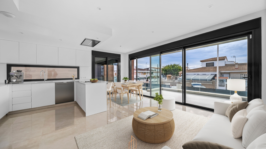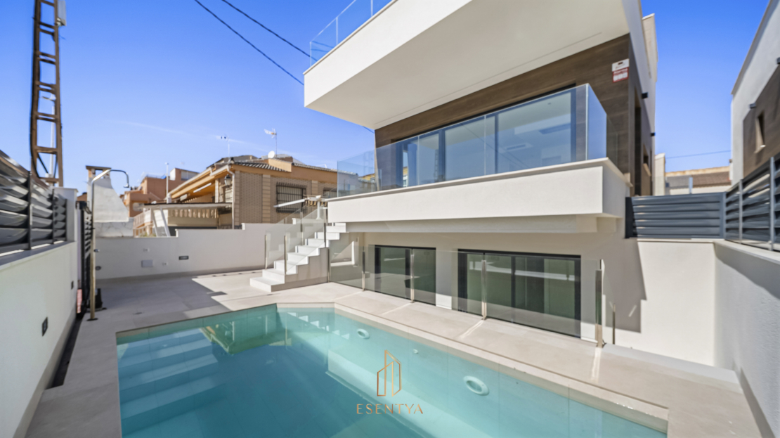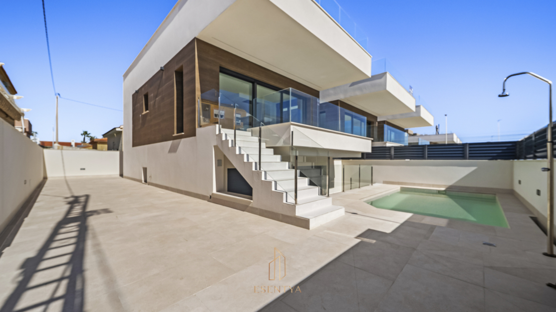 Discover Villa Playa: Exclusive villas with sea views!Experience luxury and charm at Villa Playa, an exceptional project that invites you to live surrounded by beauty and comfort in the picturesque village of La Mata, just outside Torrevieja. Imagine waking up every morning to sea views from your modern, elegant designer villa.These three spacious villas are built using high-quality materials and modern construction techniques, offering an outstanding living experience. They are the first homes constructed with a highly insulated wall system developed in Norway, ensuring excellent thermal insulation all year round.From your private terrace, you can enjoy stunning views of the Mediterranean while soaking up the sun thanks to the south-facing orientation. The villas offer peace and privacy, just 70 metres from one of the most beautiful beaches on the Costa Blanca.Each villa features four bedrooms with built-in wardrobes and three bathrooms. Enjoy your own private outdoor area with swimming pool, perfect for relaxing in the warm Mediterranean climate. A private parking space within the plot is also included.The interiors are designed with great attention to detail. On the main floor, you will find one bedroom with built-in wardrobe, one bathroom, and a spacious open-plan living area with kitchen. From the living room, you have direct access to a south-facing terrace with spectacular sea views. Large windows and sliding doors flood the space with natural light and enhance the feeling of openness. The semi-basement level includes three bedrooms, two bathrooms (one en-suite), and a storage room. Two of the bedrooms on this level have direct access to the outdoor area and swimming pool through large sliding doors, allowing seamless indoor-outdoor living.Finally, a spacious solarium offers the perfect place to enjoy unforgettable moments overlooking the Mediterranean and the surrounding area.The property is completely empty; artificial intelligence has been used to simulate how the home could look when furnished.Key features: South-facing orientation 4 bedrooms, 3 bathrooms Sea views from terrace and solarium 70 metres from the beach Central air conditioning Underfloor heating throughoutArea information: Just outside the property, you will find the charming promenade, supermarkets, and a wide selection of restaurants, bars, and cafés. The centre of La Mata is only 600 metres away, offering all essential services such as shops, banks, pharmacies, and medical centres.La Mata is a coastal village of approximately 1,500 inhabitants, located on the outskirts of Torrevieja, 40 km south of Alicante Airport, along the Mediterranean coast. La Mata Beach stretches for 2.5 km and is one of the most popular beaches in the area. It has been awarded the European Blue Flag for several consecutive years, the highest recognition for quality. Thanks to local planning regulations and its location surrounded by three large natural parks, La Mata will preserve its status as a true Mediterranean gem, maintaining much of its traditional Spanish character.In addition, the three natural parks offer unique opportunities for hiking and enjoying nature.Contact us for more information and to arrange your visit!