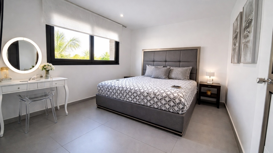 Discover an exceptional villa that blends contemporary elegance with relaxed Mediterranean charm in the highly sought-after area of Los Balcones, Torrevieja. Set on a private plot, this stunning 5-bedroom, 4-bathroom residence is offered fully furnished, allowing you to move in and start enjoying the lifestyle immediately.The villa welcomes you with generous, sun-filled interiors, high-quality finishes, and a seamless flow throughout. Stylish furnishings complement the modern design, while each bedroom offers comfort and privacy. The beautifully appointed bathrooms reflect refined taste and attention to detail. The heart of the home opens onto a private swimming pool, creating the perfect setting for entertaining, family gatherings, or tranquil afternoons under the Spanish sun.Outside, the landscaped terraces provide multiple areas to relax and dine al fresco, and the private garage ensures convenience and security. Every detail of this home has been carefully considered to deliver both elegance and functionality.Located just minutes from beaches, golf courses, shops, and restaurants, this villa offers the ideal balance of exclusivity and accessibility—perfect as a permanent residence, luxury holiday home, or high-end investment.Key Features:Fully furnished5 spacious bedrooms & 4 modern bathroomsPrivate swimming poolPrivate garageElegant, light-filled interiorsPrime location in Los Balcones, TorreviejaA truly gorgeous villa that captures the essence of luxury living on the Costa Blanca.