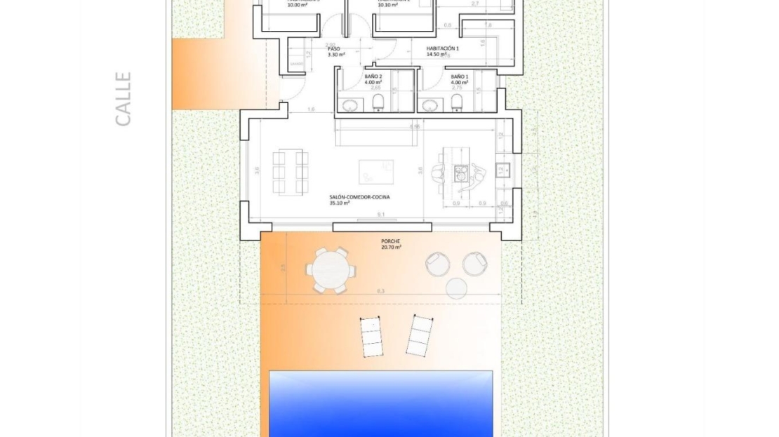 Część dzienna: Znajduje się tu przestronny salon-jadalnia z otwartą kuchnią typu biurowego (meble kuchenne wliczone w cenę), która łączy się z dużą nowoczesną werandą przez dwa duże okna, ustępując miejsca ogrodowi i basenowi. Światło zalewa każdy zakątek dzięki dużym oknom w salonie, które otwierają się na werandę, nowoczesną i funkcjonalną przestrzeń, która zaprasza do pełnego korzystania z zewnątrz. Wyobraź sobie spędzanie popołudni z rodziną i przyjaciółmi, w otoczeniu spokojnego i naturalnego środowiska. Jako dodatkowa przestrzeń, posiada