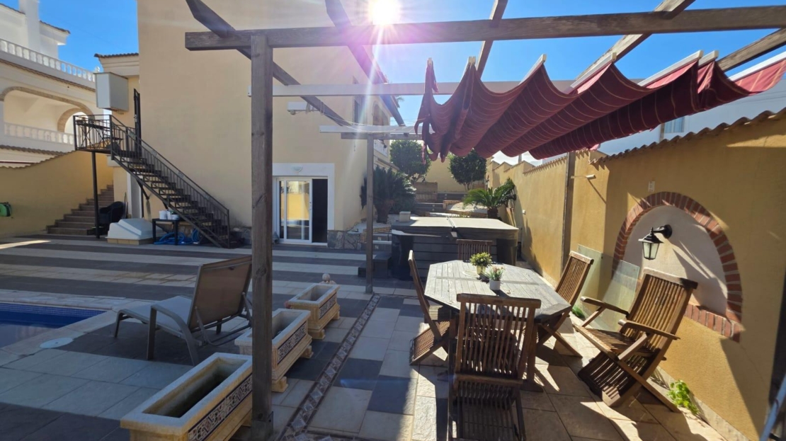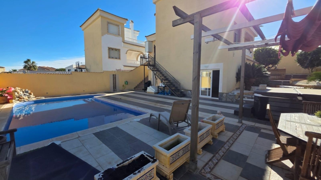 Spectacular Independent Villa in Villamartín – Privacy, Jacuzzi, and Renovated Basement Discover the home of your dreams in the exclusive area of Las Filipinas, Villamartín! This stunning independent villa sits on a generous plot of 645 m², offering an oasis of tranquility and private luxury. The property features 153 m² of intelligently and stylishly distributed living space: – Versatile spaces: It has 3 spacious bedrooms and 3 bathrooms. – Premium basement: The basement has been completely renovated, offering an extra space ideal for an independent fourth bedroom, game room, or guest area. – Dreamy exteriors: Enjoy the Mediterranean climate in your private pool or relax to the fullest in the private jacuzzi. – Privileged location: Situated in one of the most sought-after areas, close to golf courses, services like Mercadona, Aldi, gas station, pharmacy, bars, restaurants, and just minutes from the best beaches. A unique opportunity for those seeking space, comfort, and an excellent investment. Come visit and fall in love!