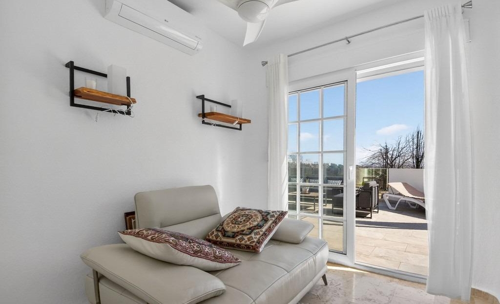 Discover this exclusive detached villa with an infinity pool, located in the prestigious Las Ramblas Golf area. This spectacular property is perfect for those seeking a home that combines luxury and tranquility. With its four spacious bedrooms and three bathrooms, every corner has been designed with comfort and functionality in mind. The large kitchen flows seamlessly into the dining and living areas, offering unobstructed sea views—perfect for creating unforgettable moments with loved ones. The exterior will surprise you with a stunning private infinity pool surrounded by lush greenery; ideal for relaxing while taking in the beautiful natural landscapes. It also boasts two large terraces: a charming ground-floor terrace perfect for family gatherings or simply sunbathing, and a spacious south-facing terrace on the first floor, specially designed to maximize sunlight year-round. And let’s not forget your own barbecue! Sold fully furnished, ready to move in, or as an investment.