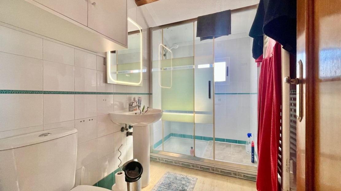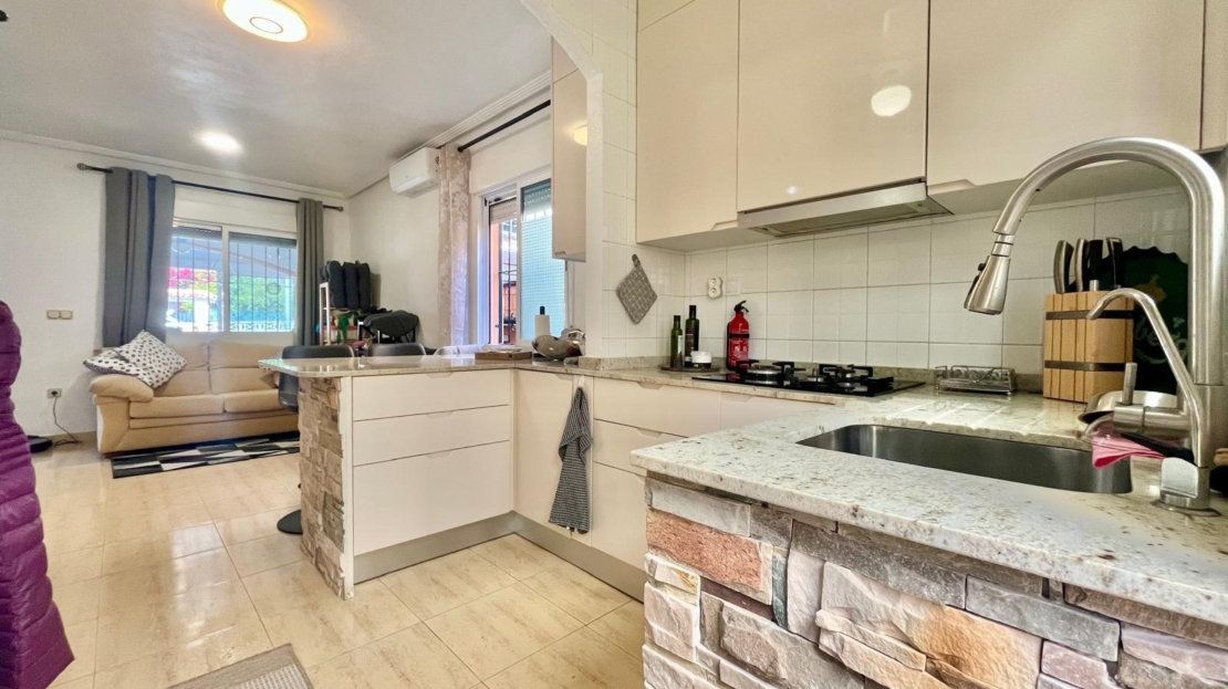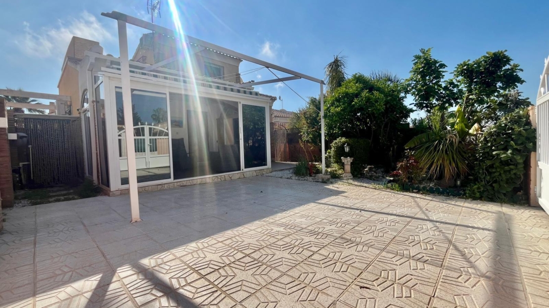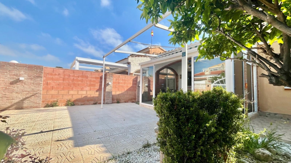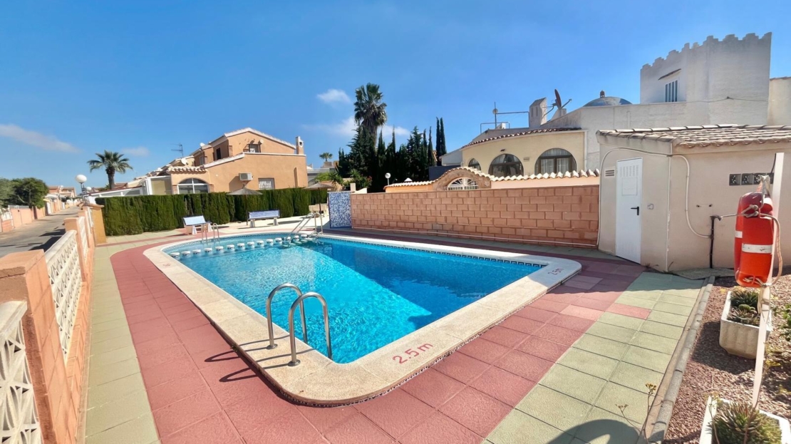 Detached villa with solarium and option for private pool in Las Mimosas – Orihuela Costa Enjoy sunshine all year round just 2 km from the sea ☀️ A detached home full of potential, with generous outdoor space and the option to build your own private pool for only €15,000. Perfect as a permanent residence or a smart investment in one of the most sought-after areas of Orihuela Costa. Detached villa for sale in the exclusive area of Las Mimosas, Orihuela Costa. Located in a მშვიდ and pleasant environment, this property offers the perfect balance between privacy and proximity to the sea, just 2 km from the beautiful beaches of Orihuela Costa—ideal for enjoying the Mediterranean lifestyle all year round. The property benefits from a west-facing orientation, ensuring excellent natural light in the afternoons and creating a warm and inviting atmosphere. It is equipped with air conditioning for maximum comfort throughout the year. The villa features 2 spacious bedrooms and 2 bathrooms, including a master bedroom with an en-suite bathroom and direct access to a large solarium—perfect for relaxing or enjoying the views. There is also the possibility of creating a third bedroom on the ground floor by enclosing part of the L-shaped living room. Outside, the property offers multiple storage rooms and plenty of space around the house, providing extra convenience and flexibility. There is also a dedicated laundry area. The property includes access to a communal swimming pool and offers the possibility of building a private pool for an approximate cost of €15,000, adding even more value and exclusivity. An excellent opportunity as a permanent home, holiday retreat, or investment in one of the most desirable areas of Orihuela Costa.