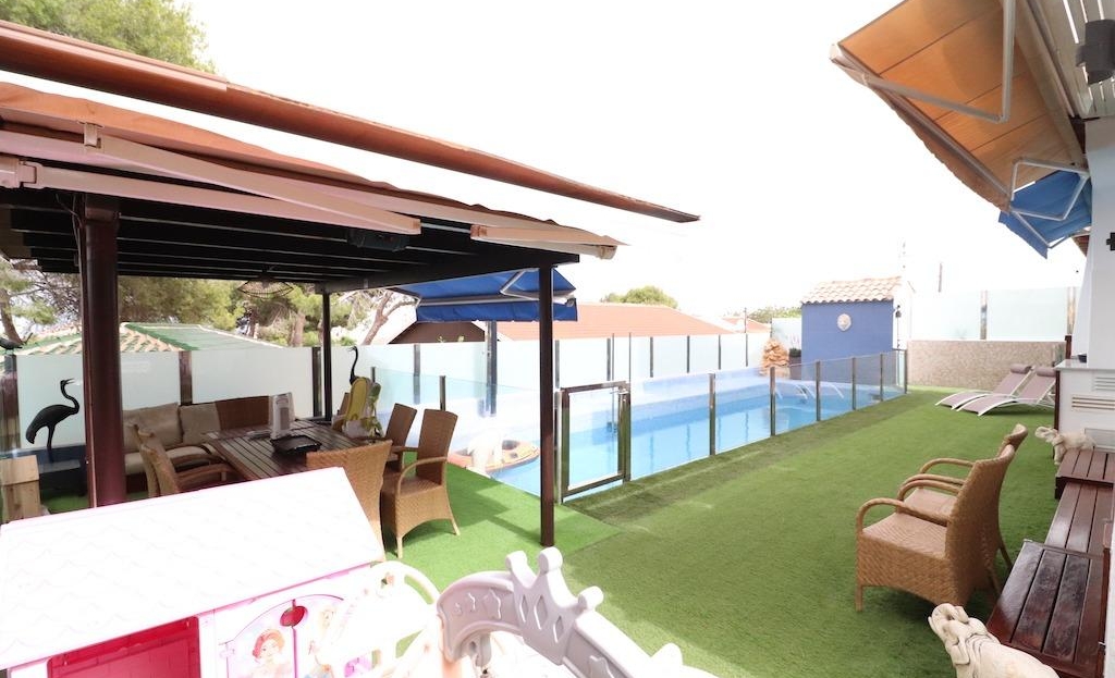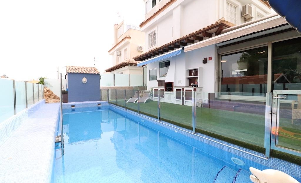 Lomas de Don Juan – Stunning Villa with Views of the Natural Park. . We present this beautiful detached villa located in Lomas de Don Juan, directly facing a protected natural area, offering privacy and unbeatable views. The property sits on a 225 m2 plot surrounded by trees, featuring a fantastic private pool, barbecue area, and a traditional wood-fired oven — a true outdoor oasis.. . The house offers 170 m2 of built space, distributed over 3 spacious bedrooms and 3 full bathrooms. The bright and airy living-dining room is enhanced by large windows and is seamlessly connected to a modern open-plan kitchen. Upstairs, the solarium with jacuzzi is the perfect spot to relax and enjoy open views of the landscape.. . The basement has been fully insulated and soundproofed, making it an ideal space for a home cinema or game room. The property also includes a private parking space, air conditioning, and is sold completed furnished.. . A unique home that perfectly blends nature, comfort, and Mediterranean style.