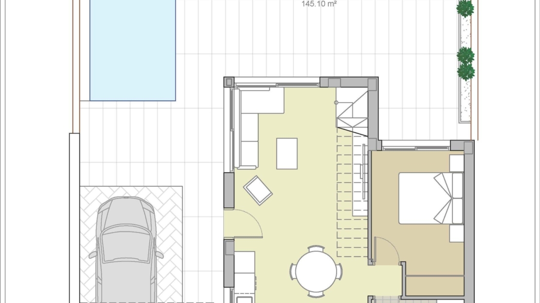 Każda willa ma nowoczesny układ na dwóch kondygnacjach i oferuje 3 sypialnie oraz 2 łazienki. Na pierwszym piętrze znajduje się odkryty taras, a za dodatkową opłatą dostępny jest opcjonalny solarium na dachu.